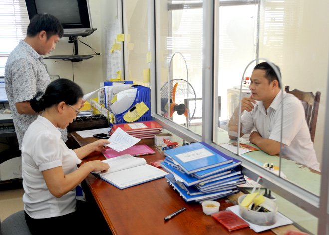 Cán bộ bộ phận Văn phòng HĐND và UBND tiếp nhận, xử lý văn bản. Ảnh: TQĐT