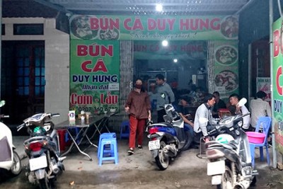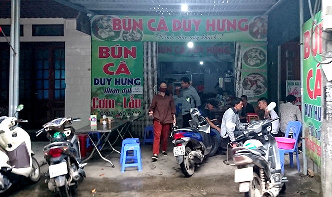 Tại quán bún cá Duy Hưng, phường Phan Thiết có rất đông người dân đến ăn sáng.