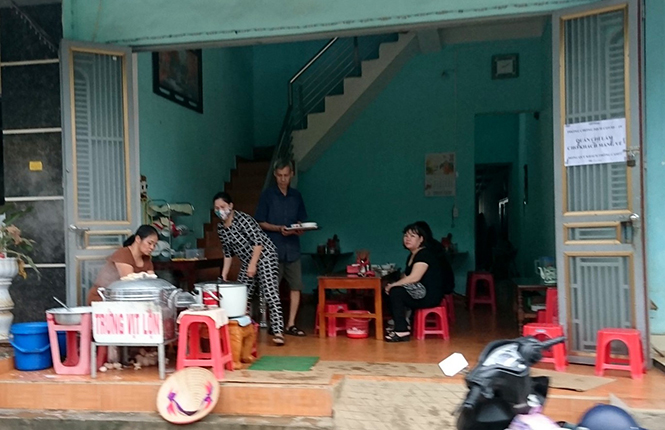 Quán bánh cuốn ở số nhà 441, đường Phạm Văn Đồng mở cửa cho khách ăn tại quán, người bán hàng không đeo khẩu trang khi chế biến thực phẩm.