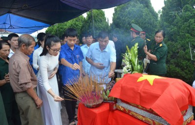 Phát biểu tại buổi lễ, đồng chí Phó Chủ tịch UBND tỉnh Lê Thị Kim Dung nhấn mạnh, theo tiếng gọi thiêng liêng của Tổ quốc, tình hữu nghị Việt - Lào, quân tình nguyện Việt Nam đã sát cánh với quân đội Lào cùng chiến đấu anh dũng. Các chiến sỹ đã cống hiến tuổi thanh xuân cho sự nghiệp giải phóng dân tộc, góp phần tạo nên thắng lợi của cách mạng 2 nước Việt - Lào. Chiến tranh đã lùi xa nhưng nhiều chiến sỹ quân tình nguyện Việt Nam vẫn nằm lại nơi chiến trường. Phát huy truyền thống “Uống nước nhớ nguồn”, thực hiện chủ trương của Đảng và Nhà nước, các đơn vị tìm kiếm hài cốt liệt sỹ đã tích cực tìm kiếm, quy tập hài cốt liệt sỹ về quê hương an táng. Tỉnh ủy, HĐND, UBND, Ủy ban MTTQ tỉnh trân trọng cảm ơn những việc làm cao cả của Ban Chỉ đạo 1237 tỉnh Nghệ An, Bộ Chỉ huy Quân sự tỉnh Nghệ An đã không quản ngại khó khăn, gian khổ tìm kiếm, đưa hài cốt liệt sỹ trở về địa phương chu đáo, an toàn, đáp ứng tâm nguyện, mong ước của Đảng bộ, chính quyền và nhân dân các dân tộc trong tỉnh.
