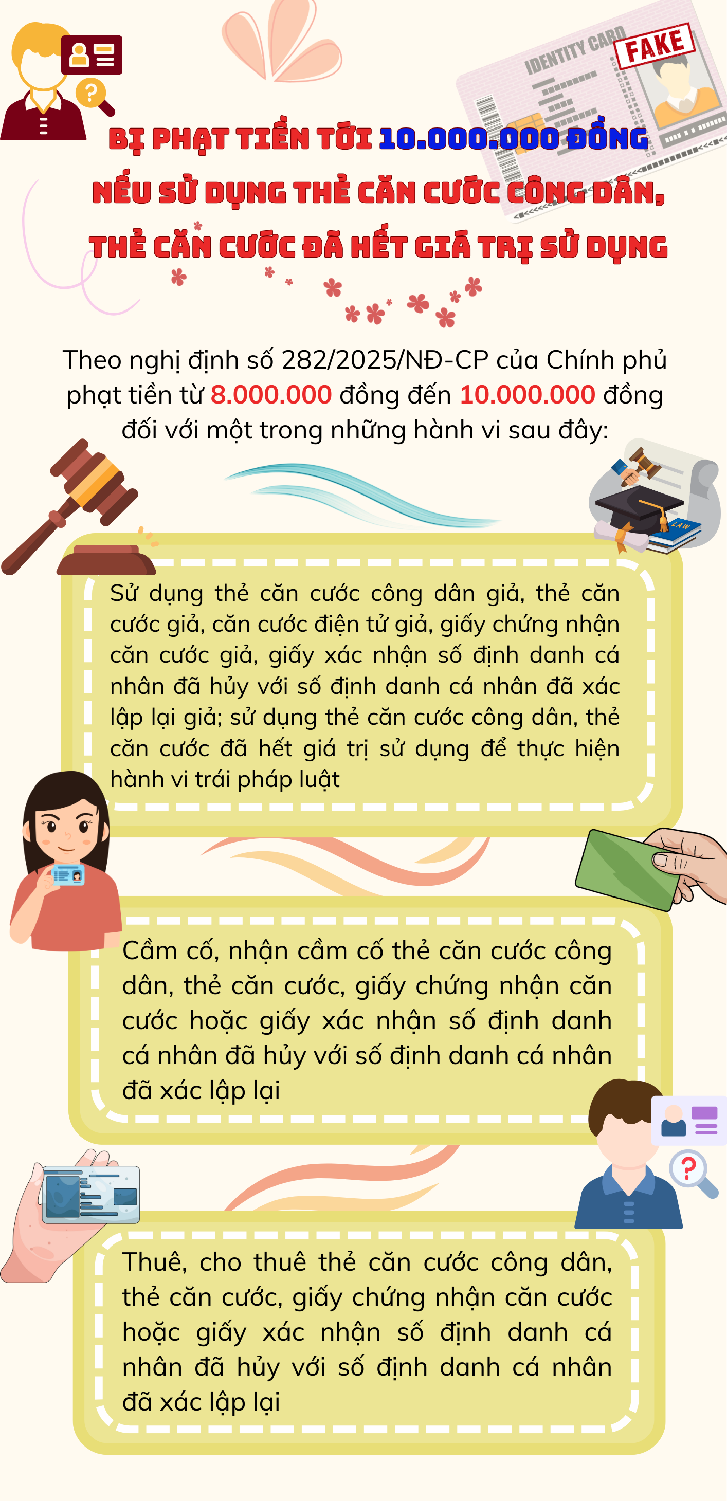 Bị phạt tiền tới 10 triệu đồng nếu sử dụng thẻ căn cước công dân, thẻ căn cước đã hết giá trị sử dụng để thực hiện hành vi trái pháp luật