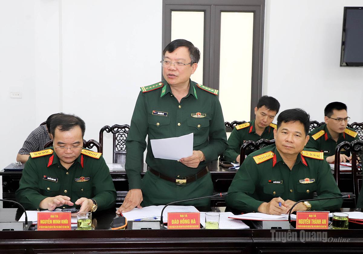 Các đại biểu đã tập trung làm rõ những kết quả đạt được, phân tích giải pháp thực hiện hiệu quả nhiệm vụ trọng tâm quý II về: Tham mưu với Tỉnh ủy, UBND tỉnh lãnh đạo, chỉ đạo thực hiện nhiệm vụ quân sự, quốc phòng; quân đội chủ động phối hợp với các lực lượng, tăng cường kiểm tra, kiểm soát, quản lý chặt chẽ vùng trời, địa bàn trọng điểm và không gian mạng; duy trì hiệu quả “Chiến dịch 500 ngày đêm đẩy mạnh thực hiện tìm kiếm, quy tập và xác định danh tính hài cốt liệt sĩ”; nâng cao chất lượng huấn luyện, diễn tập; chấp hành nghiêm nghị quyết, kết luận, quy định của cấp trên về xây dựng Quân đội tinh, gọn, mạnh; tiếp tục kiện toàn các chức danh Ban CHQS xã, phường; chuẩn bị tốt lực lượng, phương tiện, sẵn sàng ứng phó, cứu nạn, chủ động trước thiên tai; sử dụng hiệu quả các trụ sở, tài sản công…