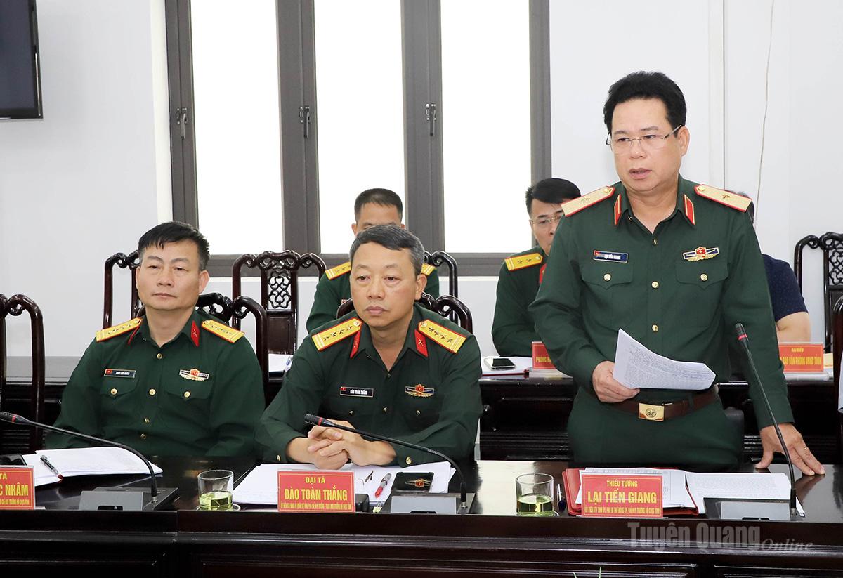 Thiếu tướng Lại Tiến Giang, Chỉ huy trưởng Bộ CHQS tỉnh phát biểu tại hội nghị.