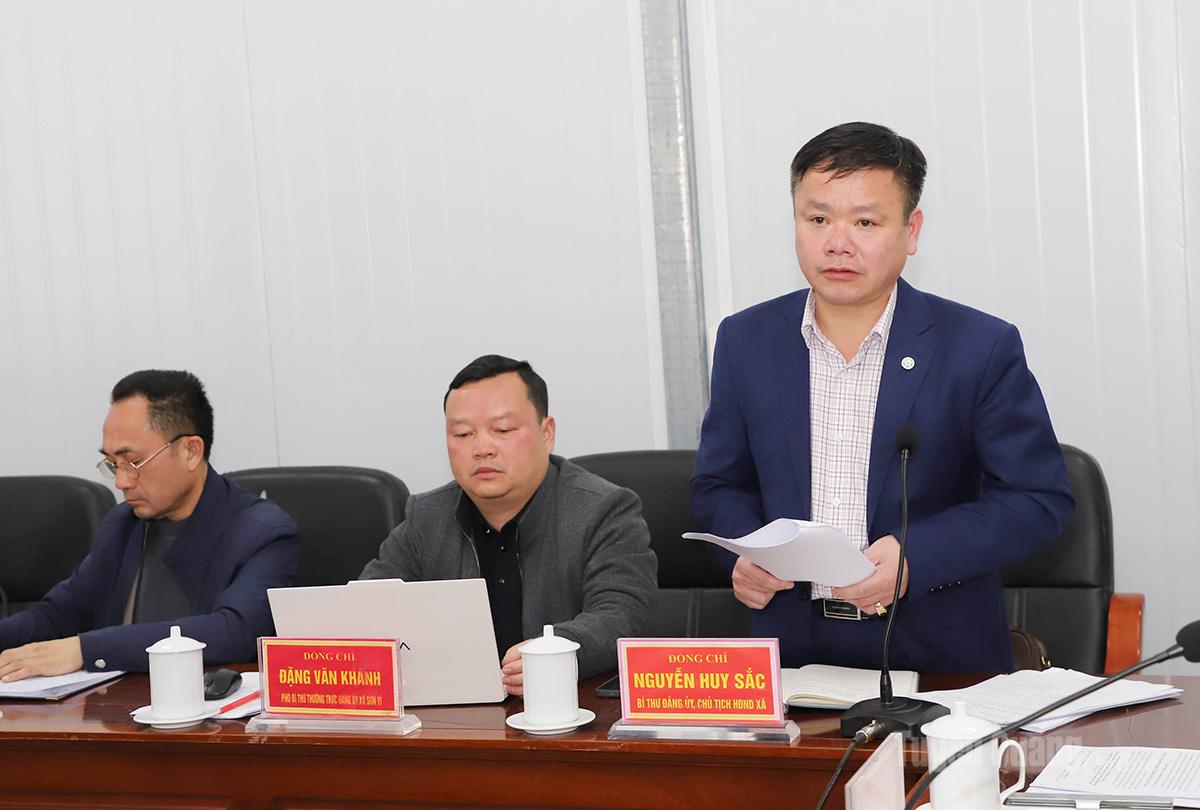 Bí thư Đảng ủy xã Sơn Vĩ báo cáo tại hội nghị.
