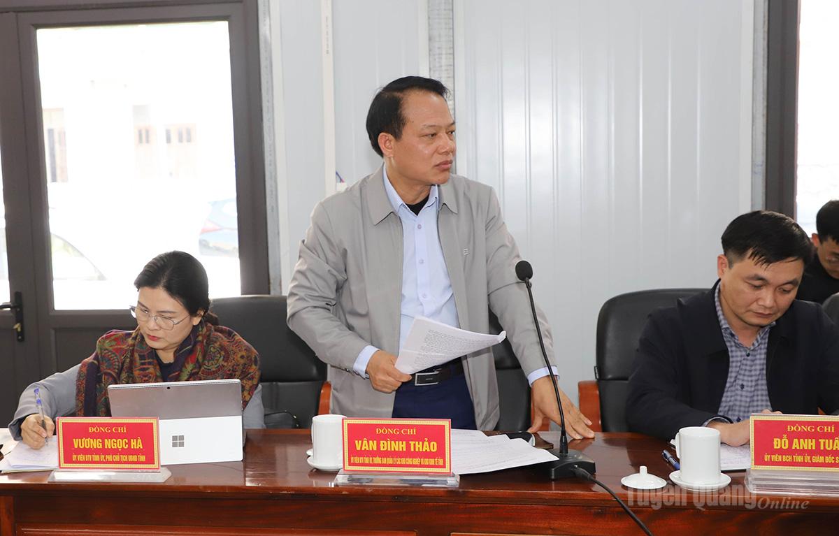 Đồng chí Vân Đình Thảo, Ủy viên Ban Thường vụ Tỉnh ủy, Trưởng Ban Quản lý các khu công nghiệp và khu kinh tế tỉnh phát biểu tại hội nghị.