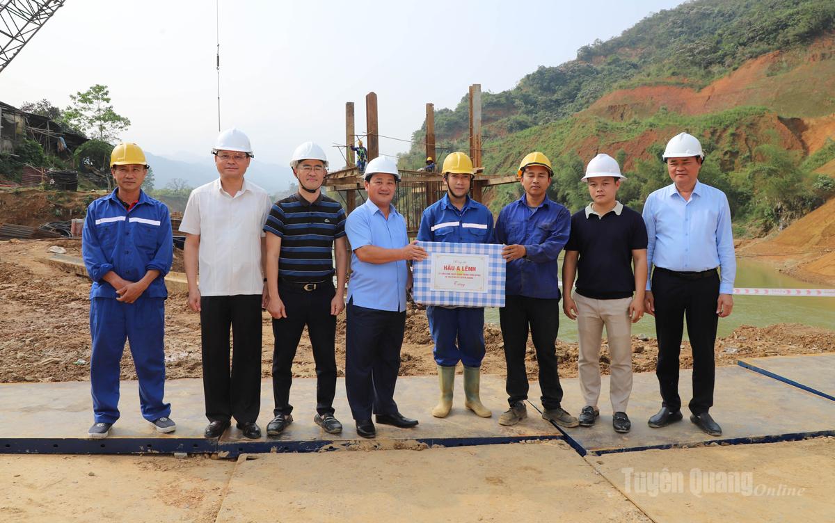 Bí thư Tỉnh ủy Hầu A Lềnh tặng quà đơn vị thi công Dự án Kè và Đường hai bên bờ sông Miện.