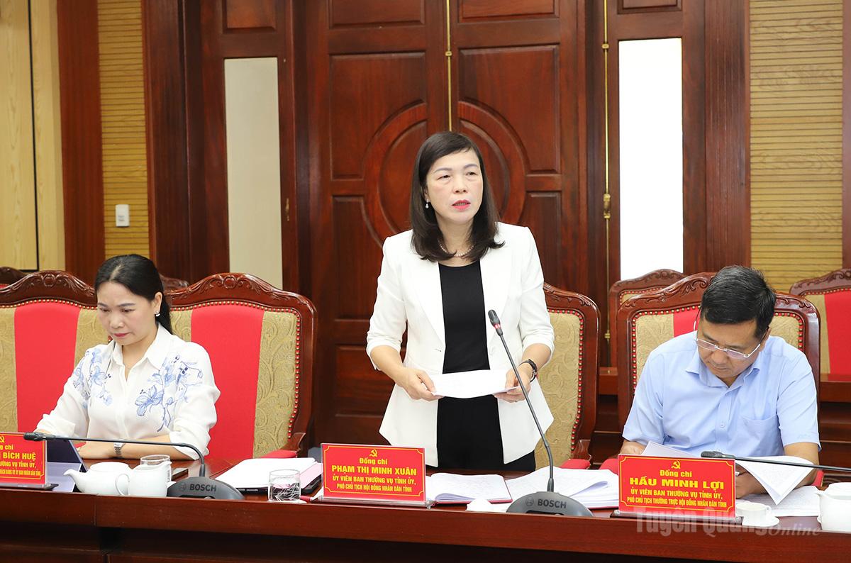 Phó Chủ tịch HĐND tỉnh Phạm Thị Minh Xuân thảo luận tại hội nghị.