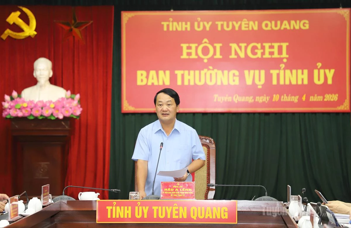 Phát biểu kết luận hội nghị, Bí thư Tỉnh ủy Hầu A Lềnh nhấn mạnh: Ban Thường vụ Tỉnh ủy cơ bản nhất trí với báo cáo sơ kết quý I. Trong quý I, Ban Thường vụ Tỉnh ủy đã tập trung lãnh đạo, chỉ đạo quyết liệt nhiệm vụ phát triển kinh tế - xã hội, đảm bảo quốc phòng - an ninh, công tác xây dựng Đảng, hệ thống chính trị và đã đạt được những kết quả khá toàn diện. Nổi bật là việc thực hiện các Nghị quyết Đại hội Đảng bộ tỉnh lần thứ I, việc ban hành các Nghị quyết chuyên đề của Ban Chấp hành, Ban Thường vụ Tỉnh ủy. Nhận định về những khó khăn trong Quý II/2026, đặc biệt là xung đột tại Trung Đông sẽ ảnh hưởng lớn đến nền kinh tế của nước ta, trong đó có tỉnh Tuyên Quang, trong bối cảnh 1 năm thực hiện chính quyền địa phương 2 cấp, năm đầu thực hiện Nghị quyết Đại hội Đảng bộ tỉnh lần thứ I, Bí thư Tỉnh ủy đề nghị các đồng chí Ủy viên Ban Thường vụ Tỉnh ủy phát huy vai trò trách nhiệm, tăng cường nắm bắt tình hình, địa bàn để tập trung lãnh đạo, chỉ đạo nhiệm vụ phát triển kinh tế - xã hội, đảm bảo quốc phòng, an ninh theo tinh thần “Quý I triển khai, quý II đột phá, quý III tăng tốc, quý IV về đích”.