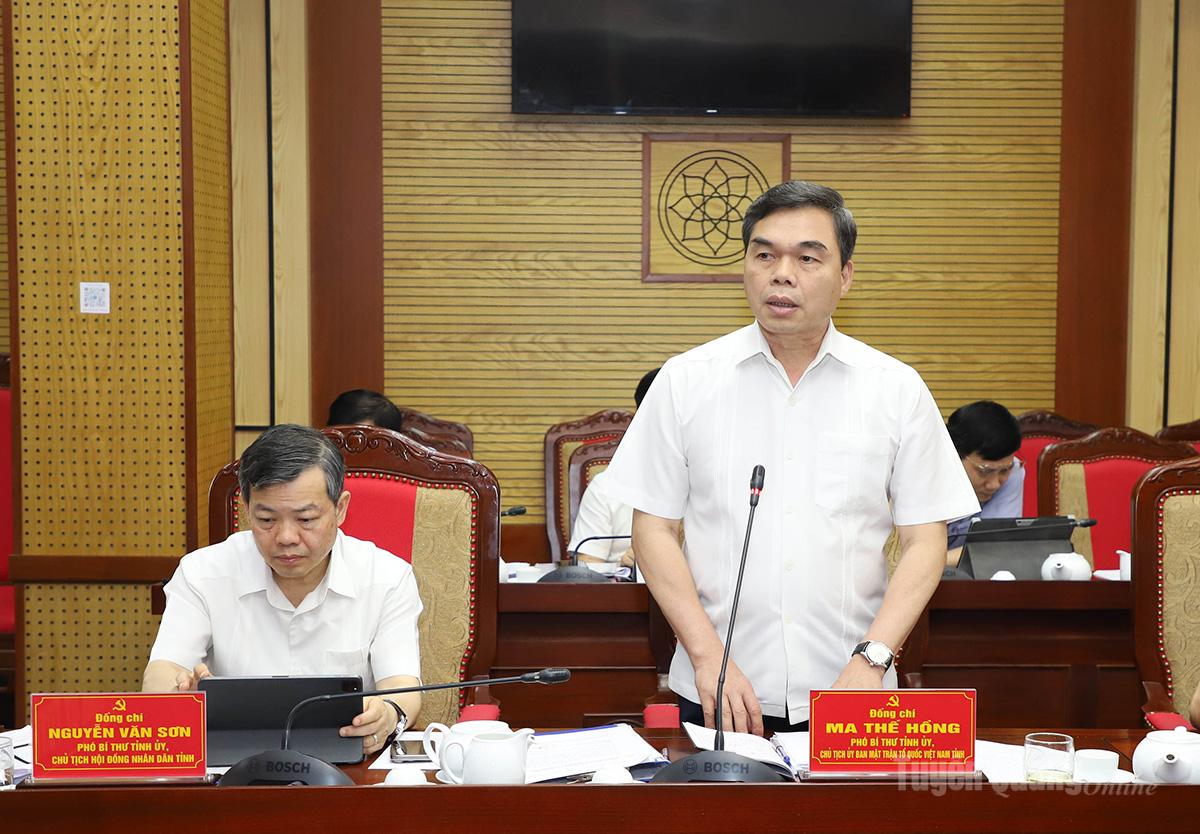 Phó Bí thư Tỉnh ủy, Chủ tịch Ủy ban MTTQ tỉnh Ma Thế Hồng thảo luận tại hội nghị.