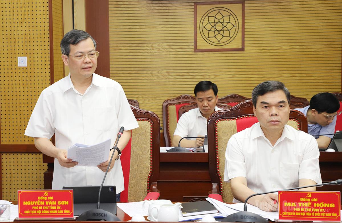 Phó Bí thư Tỉnh ủy, Chủ tịch HĐND tỉnh Nguyễn Văn Sơn thảo luận tại hội nghị.