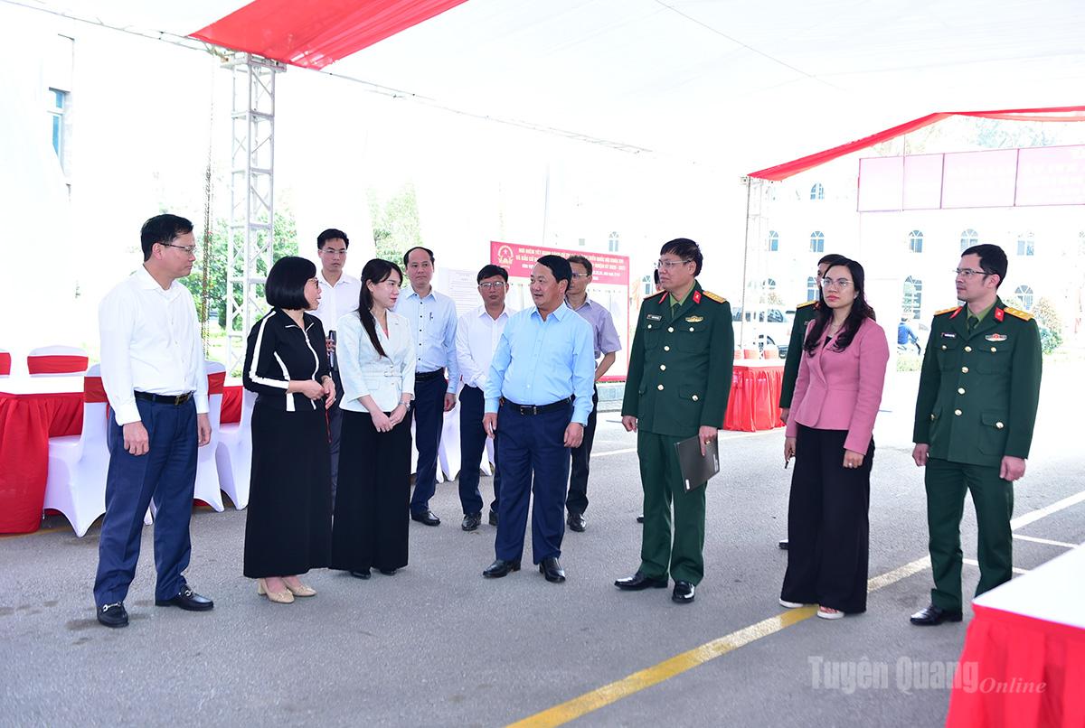 Đồng chí Bí thư Tỉnh ủy Hầu A Lềnh cùng đoàn công tác đã kiểm tra công tác chuẩn bị tại Khu vực bầu cử số 26 (đặt tại Nhà Văn hoá tổ dân phố Phan Thiết 2), phường Minh Xuân.