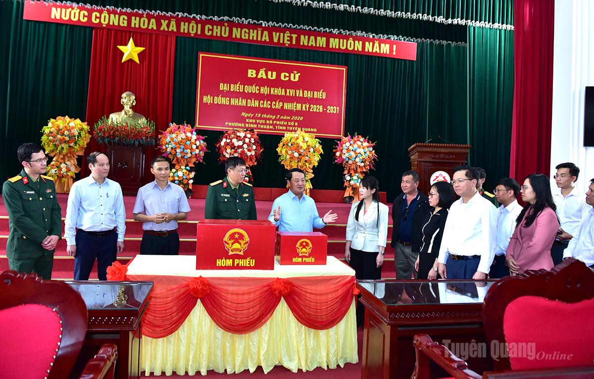 Đồng chí Bí thư Tỉnh ủy Hầu A Lềnh yêu cầu phường Minh Xuân cần tiếp tục tập trung cao độ, rà soát kỹ từng khâu, từng phần việc, bảo đảm cuộc bầu cử diễn ra dân chủ, đúng pháp luật, an toàn và tiết kiệm.