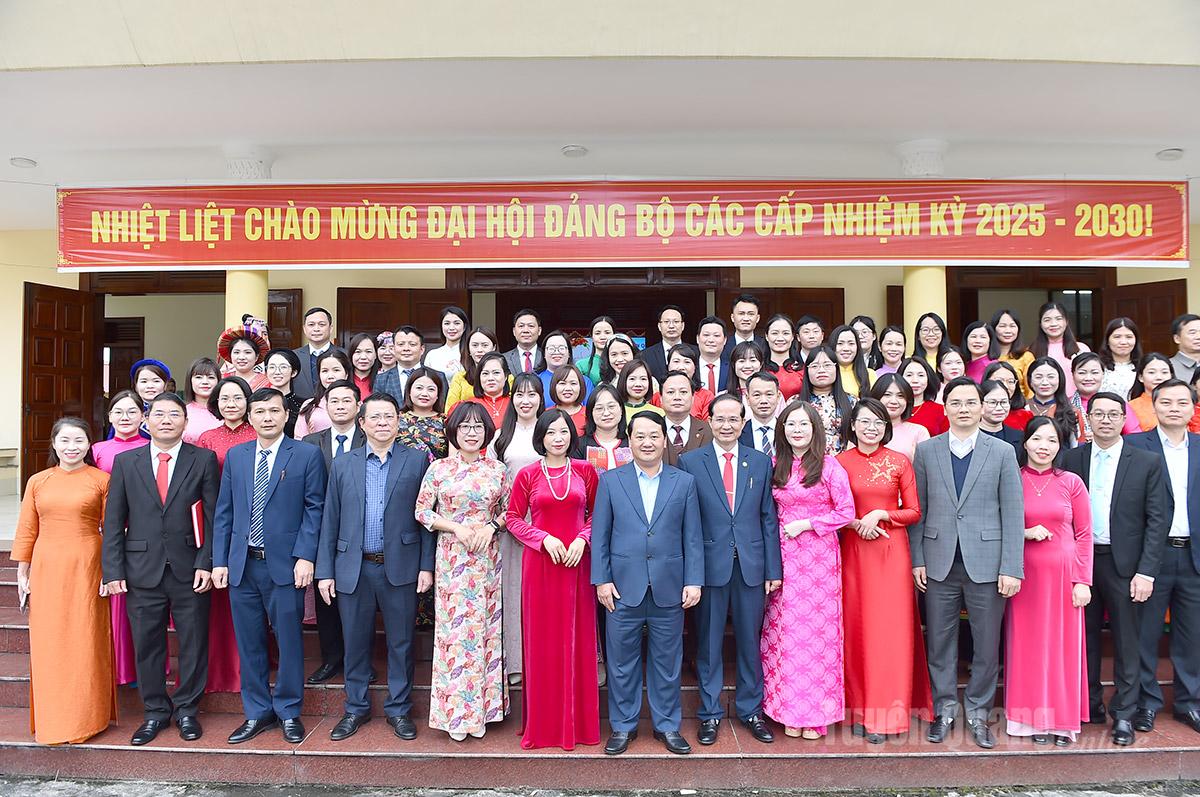 Đồng chí Bí thư Tỉnh ủy Hầu A Lềnh chụp ảnh lưu niệm cùng cán bộ, giảng viên và học viên Trường Chính trị tỉnh.