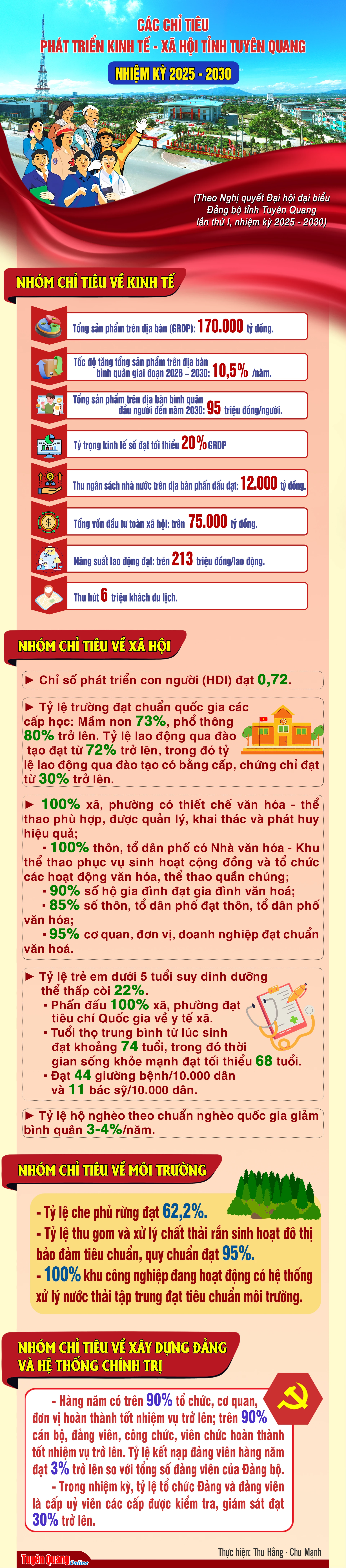 Các chỉ tiêu phát triển kinh tế - xã hội tỉnh Tuyên Quang nhiệm kỳ 2025 – 2030