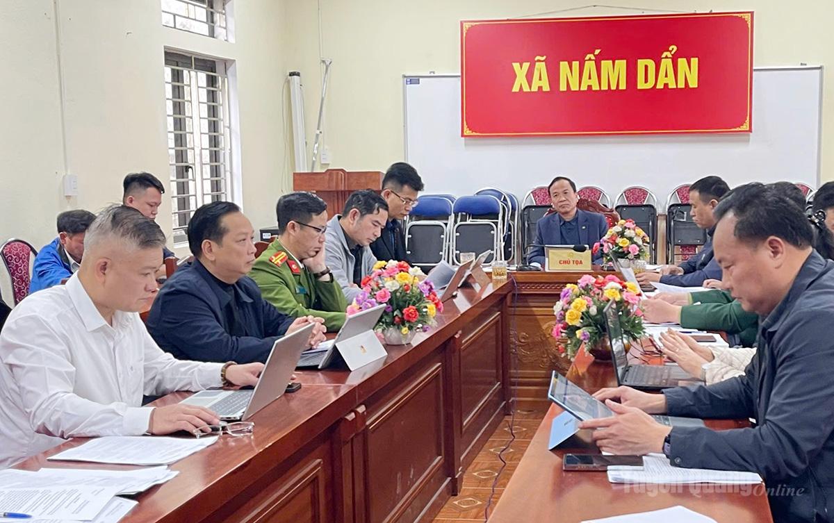 Đại biểu dự hội nghị tại điểm cầu Đảng ủy xã Nấm Dẩn.