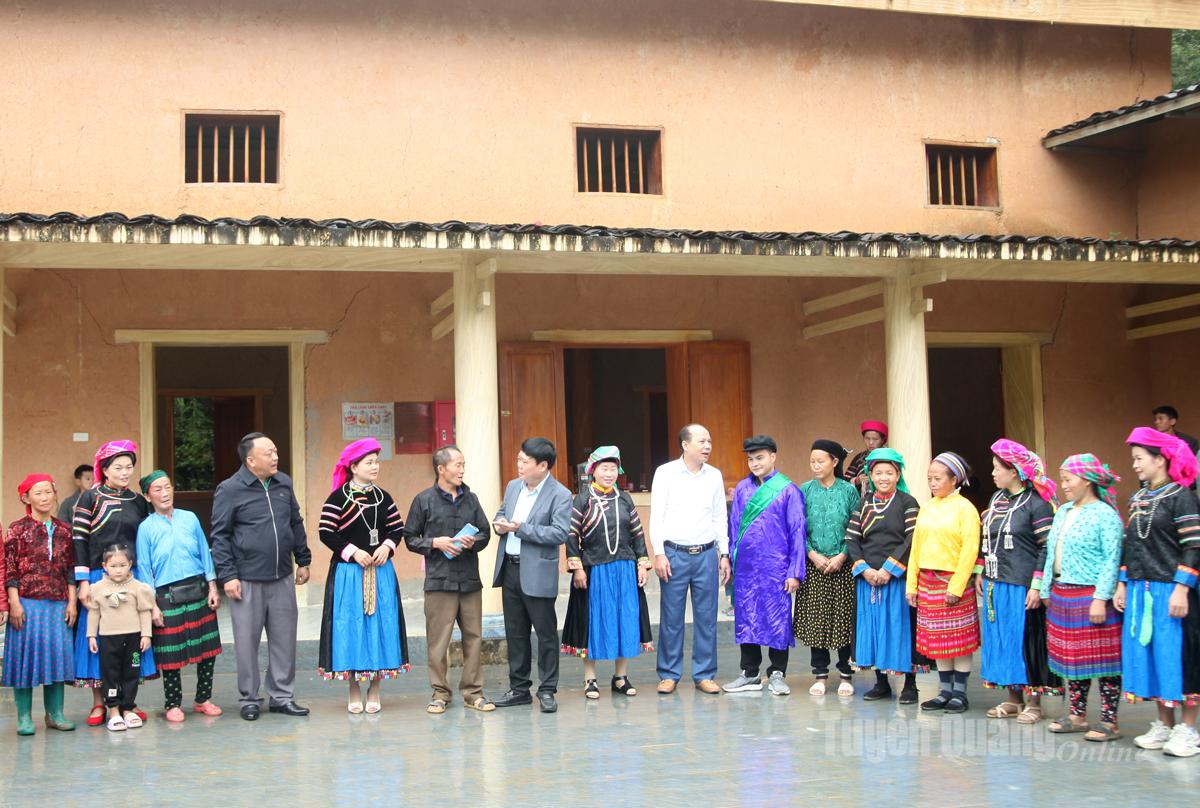Để tiếp tục phát huy những thành quả đã đạt được, đồng chí đề nghị nhân dân các dân tộc trong thôn tiếp tục giữ vững và phát huy khối đại đoàn kết toàn dân, thực hiện tốt 5 nội dung của cuộc vận động “Toàn dân đoàn kết xây dựng nông thôn mới, đô thị văn minh” và các phong trào thi đua, nhất là “đoàn kết tham gia phát triển kinh tế, tích cực giúp nhau giảm nghèo bền vững, nâng cao đời sống”....