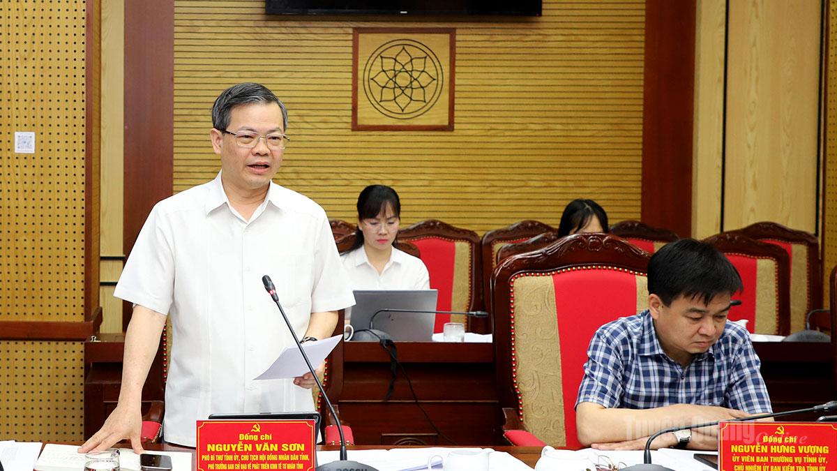 Phó Bí thư Tỉnh ủy, Chủ tịch HĐND tỉnh Nguyễn Văn Sơn phát biểu tại phiên họp.