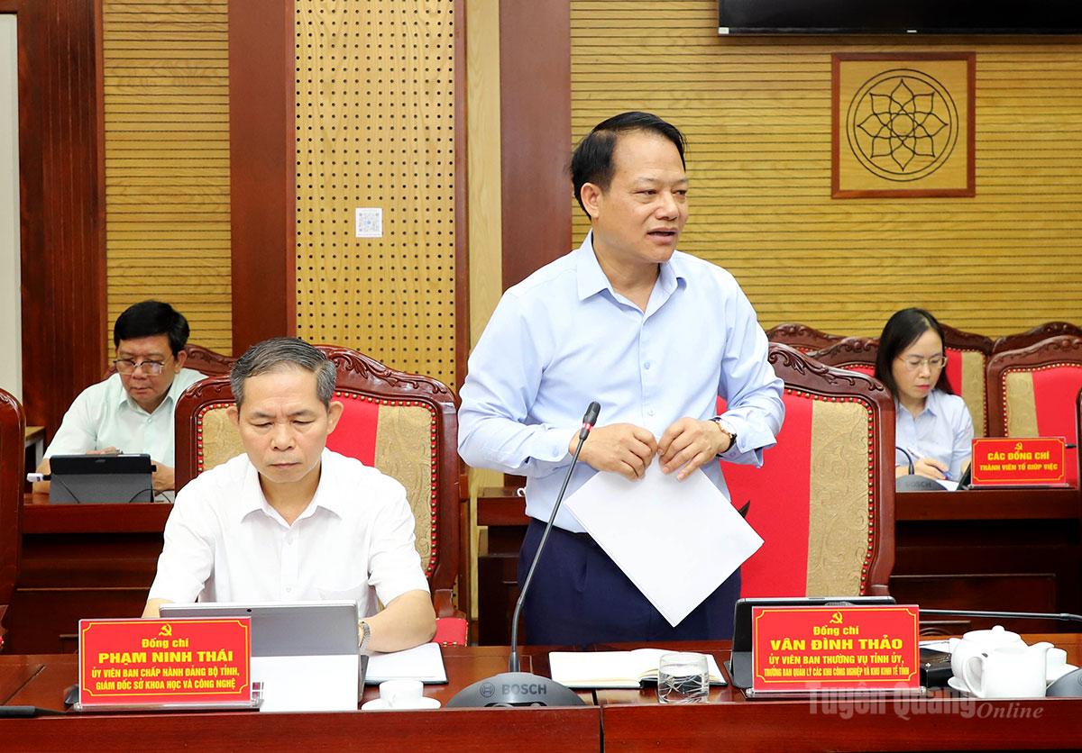 Trưởng Ban quản lý các khu công nghiệp và khu kinh tế tỉnh Vân Đình Thảo thảo luận tại phiên họp.