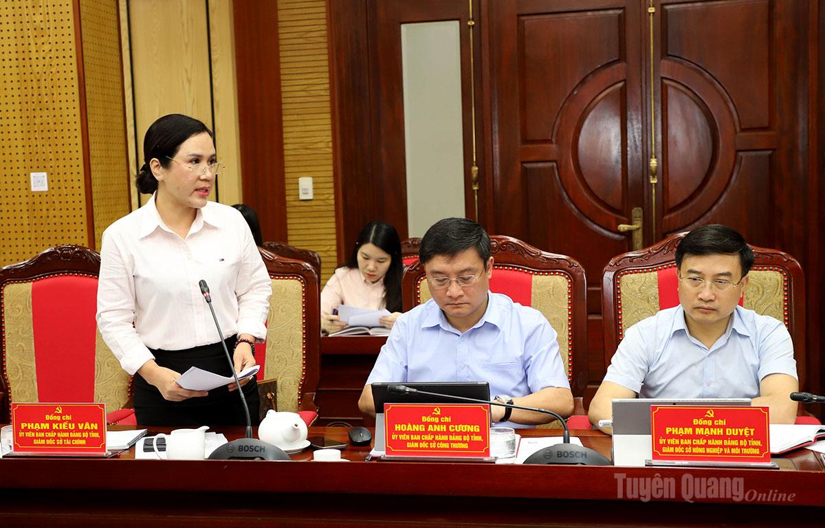 Giám đốc Sở Tài chính Phạm Kiều Vân báo cáo tại phiên họp.
