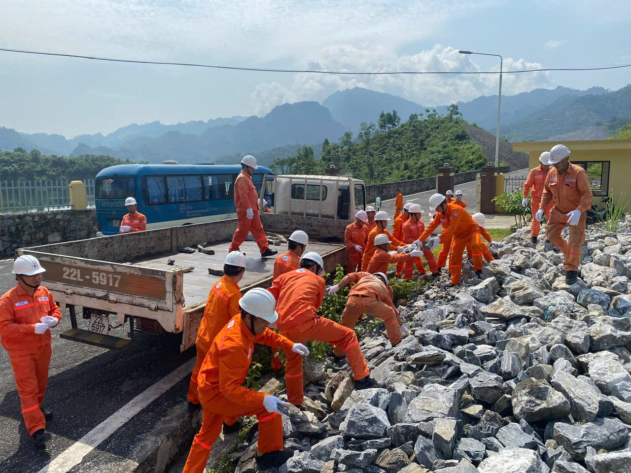 Công nhân Công ty Thủy điện Tuyên Quang diễn tập ứng cứu sự cố thiên tai bảo vệ an toàn công trình điện.