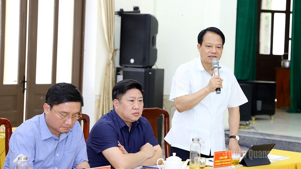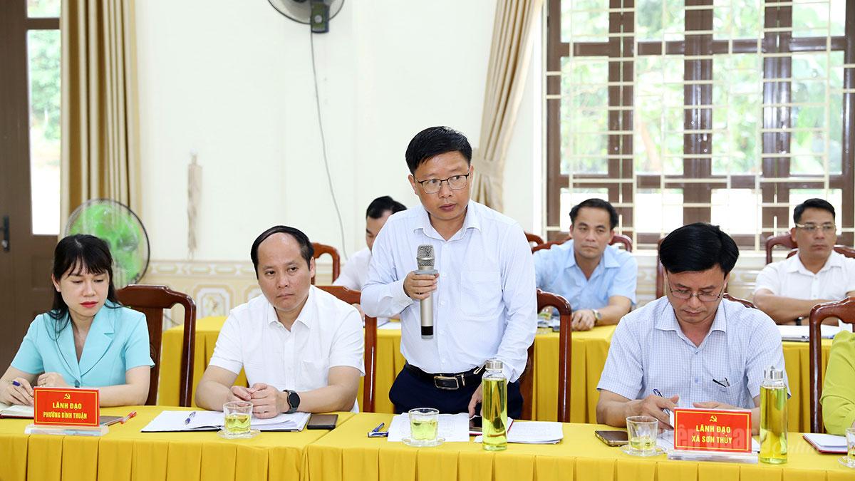 Đại diện các xã báo cáo công tác tuyên truyền, chủ động các phương án thực hiện bồi thường, tái định cư các dự án khi được phê duyệt đầu tư. Những thuận lợi và khó khăn khi triển khai các quy hoạch đầu tư hạ tầng khu, cụm công nghiệp và hạ tầng giao thông trên địa bàn.