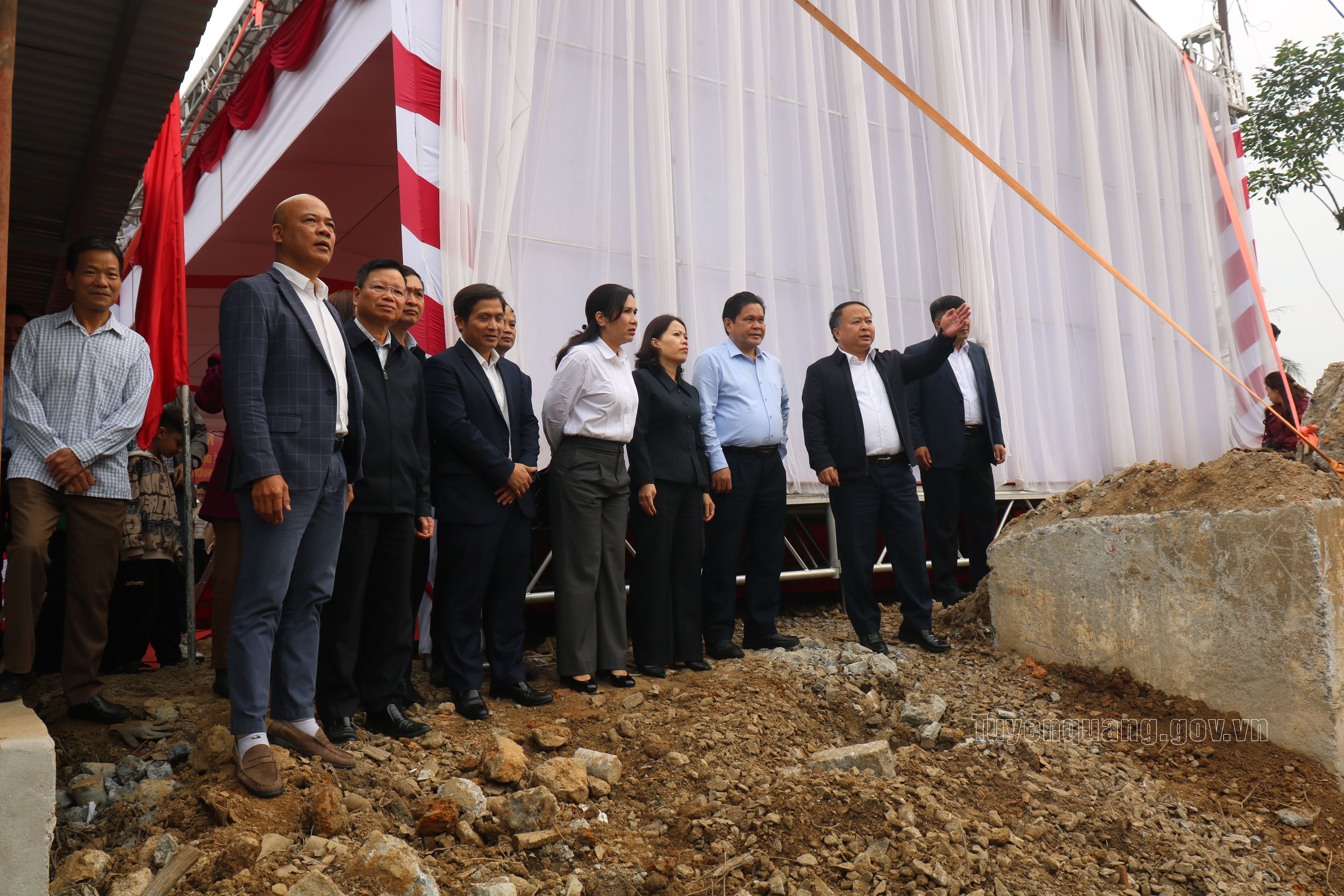 Chủ tịch UBND tỉnh Phan Huy Ngọc cùng các đồng chí lãnh đạo tỉnh và phường Hà Giang 2 chứng kiến máy móc thiết bị của nhà thầu thi công triển khai dự án ngay sau lễ khởi công.