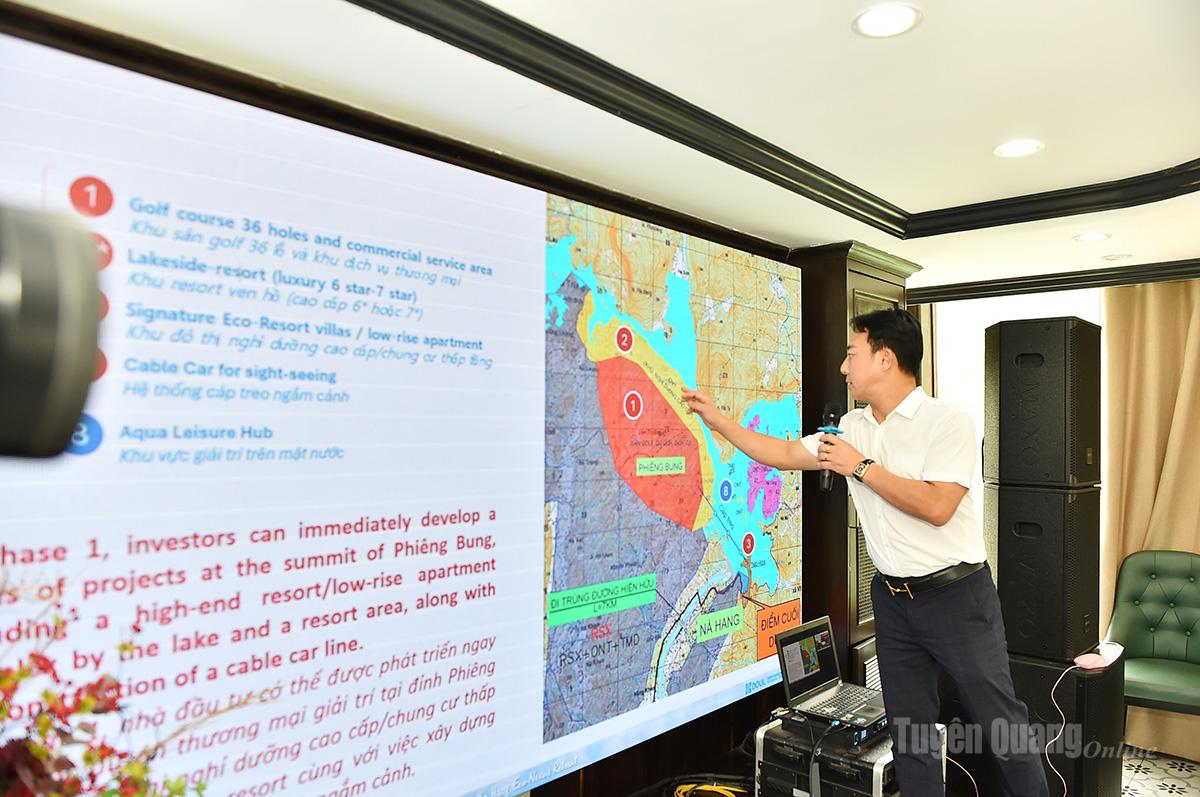 Đại diện nhà đầu tư Tập đoàn Việt Thành trình bày phương án đầu tư khu du lịch phức hợp nghỉ dưỡng Na Hang.
