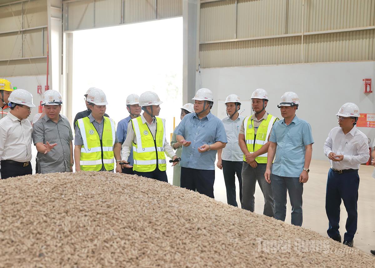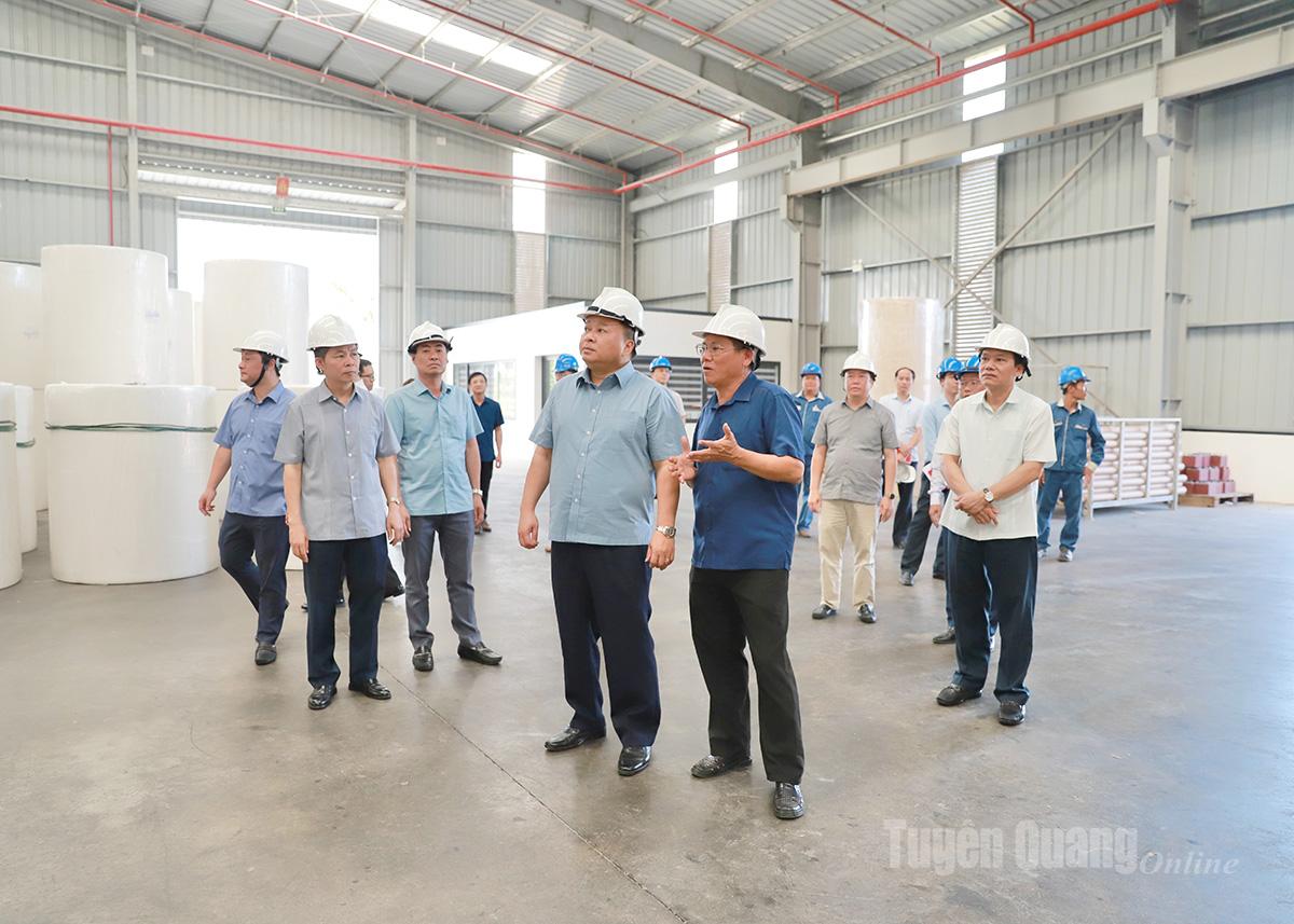 Chủ tịch UBND tỉnh Phan Huy Ngọc cùng đoàn công tác của tỉnh đã đến thăm, kiểm tra và làm việc tại Nhà máy sản xuất Giấy T-Silk của Công ty Cổ phần Hồng Phát và Nhà máy viên nén sinh khối Erex của Công ty TNHH EREX SAKURA Biomass Tuyên Quang.