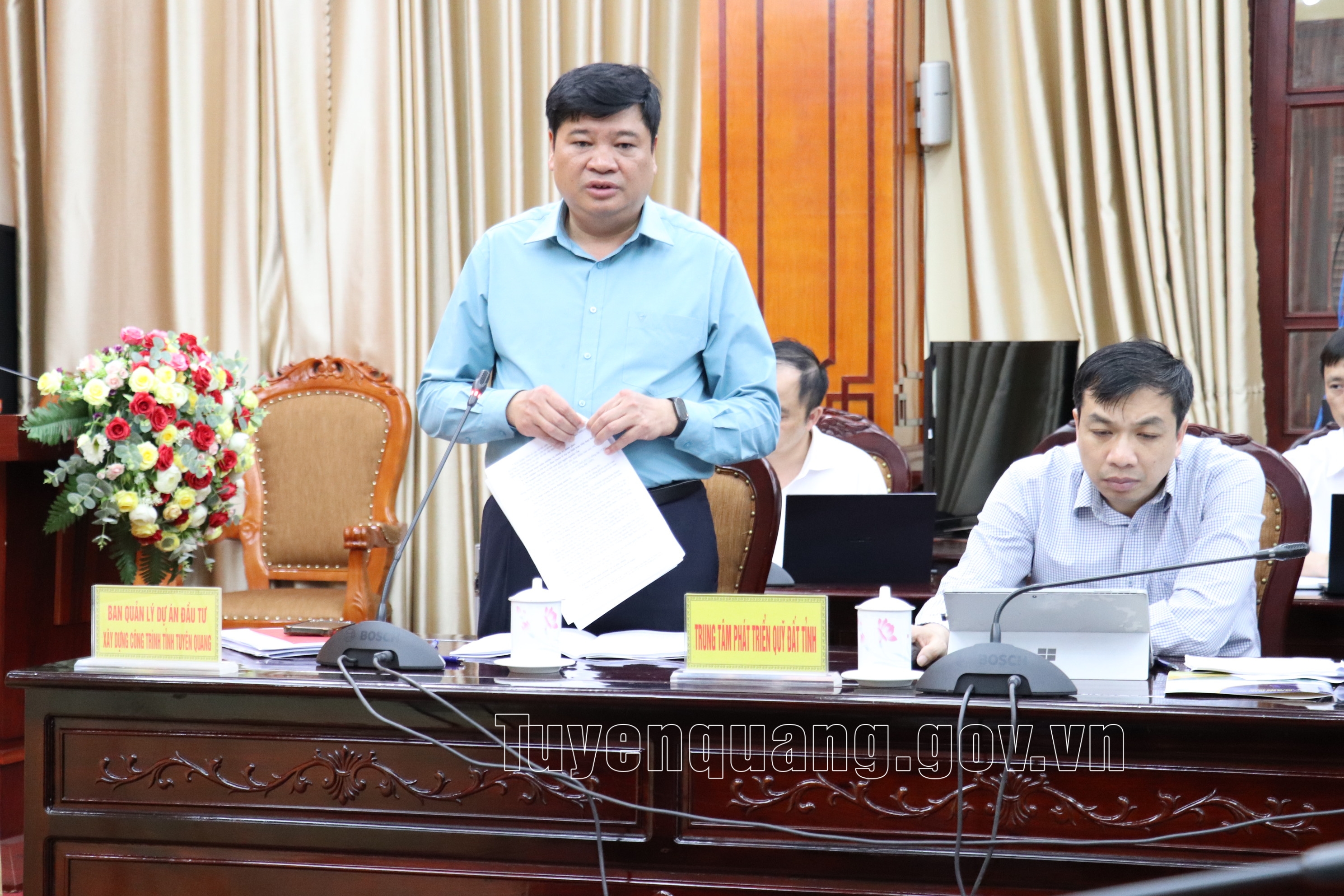 Đồng chí Lương Văn Đoàn, Giám đốc Ban quản lý dự án Đầu tư xây dựng công trình tỉnh báo cáo tại buổi làm việc.