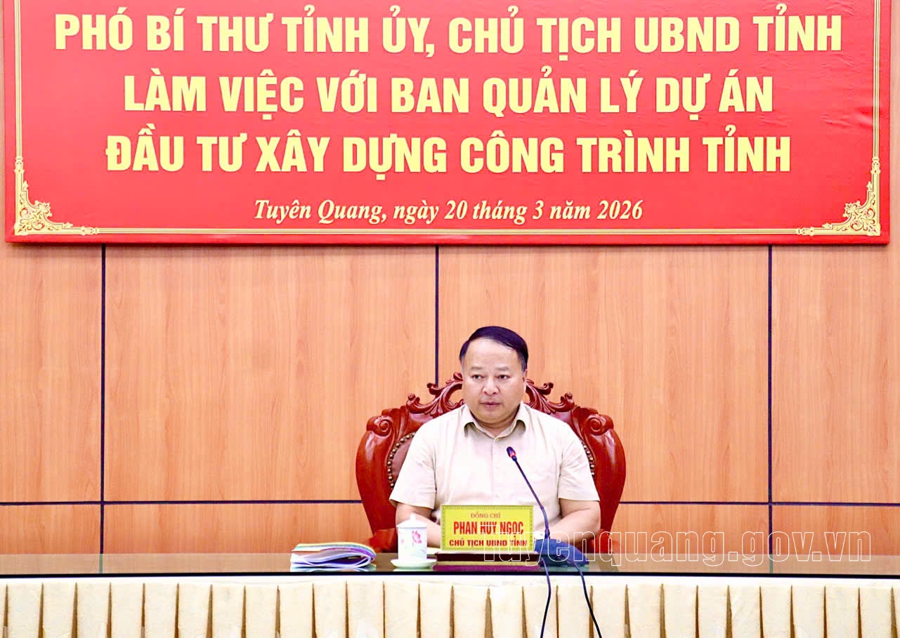 Kết luận buổi làm việc, đồng chí Phan Huy Ngọc, Chủ tịch UBND tỉnh yêu cầu Ban Quản lý dự án Đầu tư xây dựng công trình tỉnh tăng cường đôn đốc các nhà thầu huy động tối đa nhân lực, máy móc, thiết bị, tranh thủ thời tiết thuận lợi để tổ chức thi công liên tục, bảo đảm tiến độ, chất lượng các công trình theo kế hoạch. Công tác đổ thải trong quá trình thi công phải bảo đảm đúng vị trí quy hoạch, không gây ô nhiễm môi trường, ảnh hưởng đến đời sống người dân và cảnh quan khu vực. Cùng với đó quan tâm công tác tái định cư cho các hộ dân trong vùng ảnh hưởng của dự án, bảo đảm bố trí nơi ở ổn định, điều kiện sinh hoạt tốt hơn hoặc bằng nơi ở cũ. Sắp xếp, ổn định tổ chức bộ máy, bảo đảm đời sống cho cán bộ, viên chức, người lao động, tránh lãng phí nguồn nhân lực.