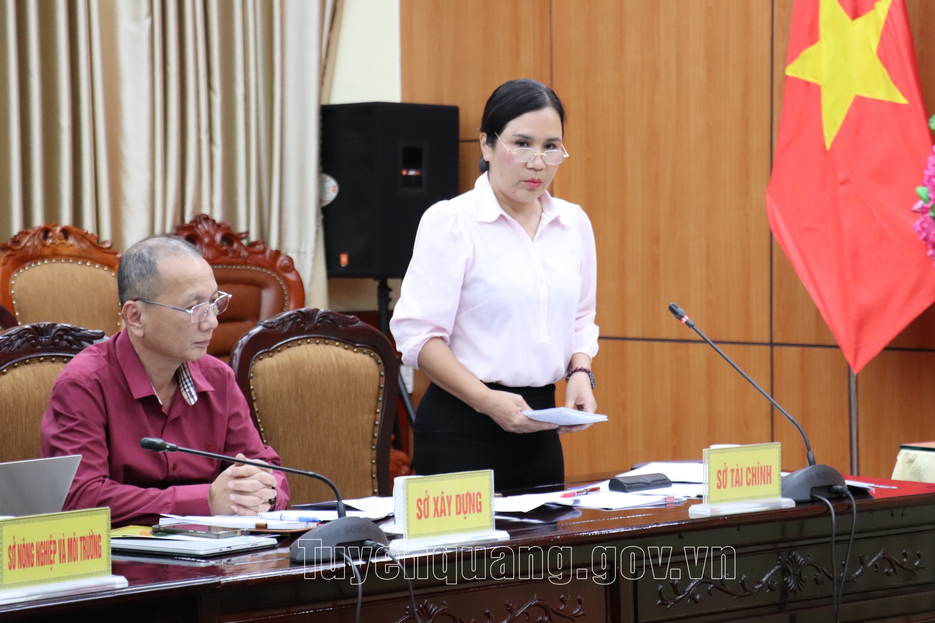 Giám đốc Sở Tài chính Phạm Kiều Vân phát biểu, làm rõ các nội dung thuộc lĩnh vực tài chính, hồ sơ thanh quyết toán các dự án.