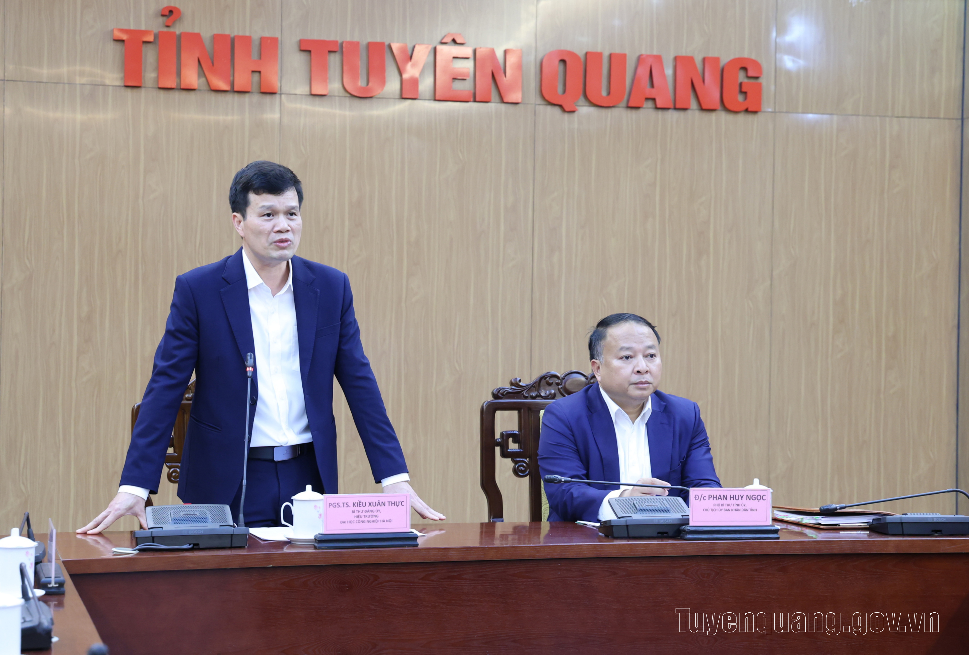 Phát biểu tại buổi làm việc, Hiệu trưởng Đại học Công nghiệp Hà Nội Kiều Xuân Thực khẳng định, đơn vị sẵn sàng hợp tác với tỉnh trong đào tạo, nâng cao chất lượng nguồn nhân lực, cung cấp sản phẩm giáo dục chất lượng cao, đáp ứng tiêu chuẩn quốc tế, then chốt là các ngành thuộc lĩnh vực kỹ thuật và công nghệ. Có cơ chế ưu đãi, tuyển thẳng với thí sinh là con em tỉnh Tuyên Quang vào một số chuyên ngành đặc thù như khoa học công nghệ, chuyển đổi số.
