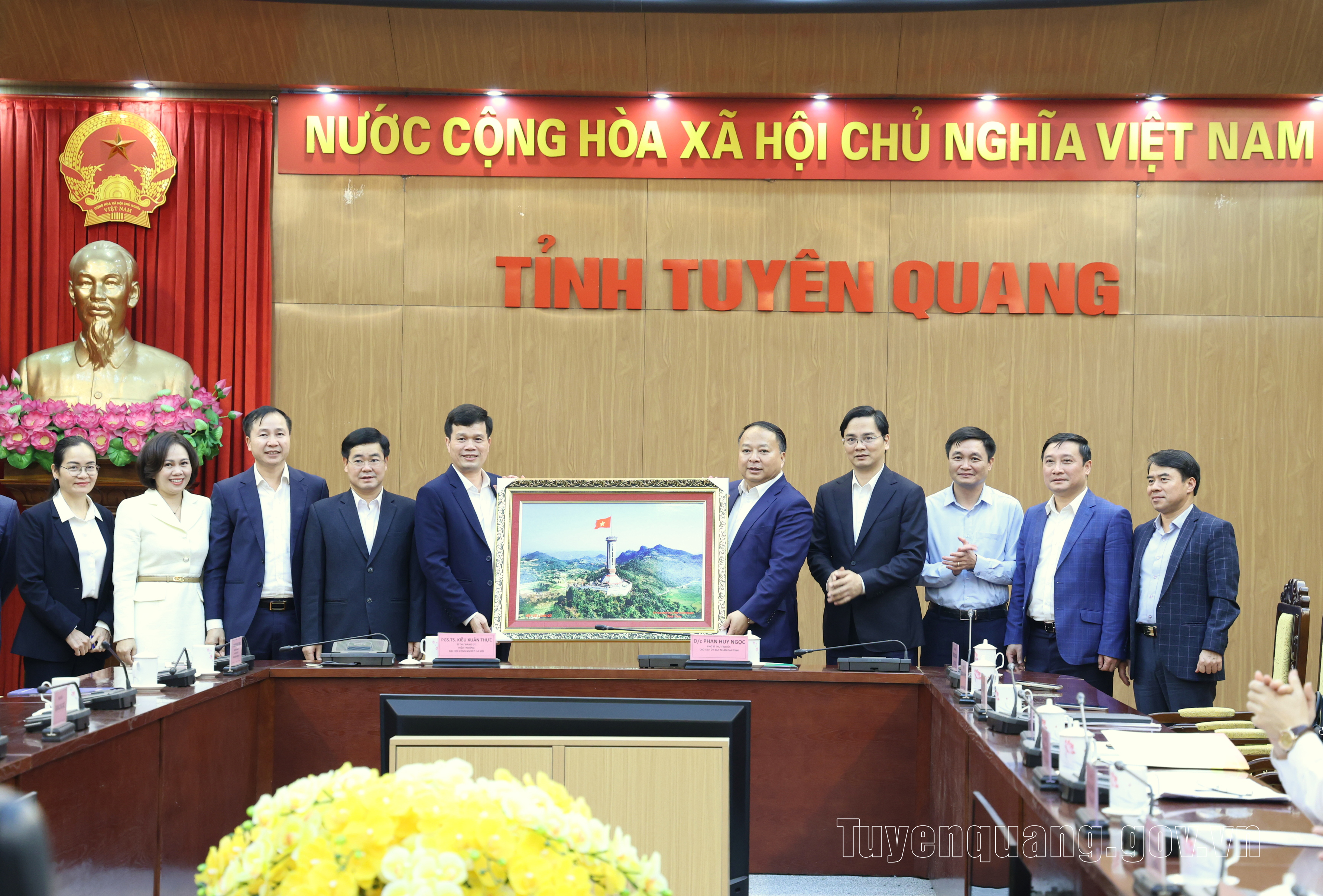 Lãnh đạo Đại học Công nghiệp Hà Nội tặng quà lưu niệm UBND tỉnh Tuyên Quang.