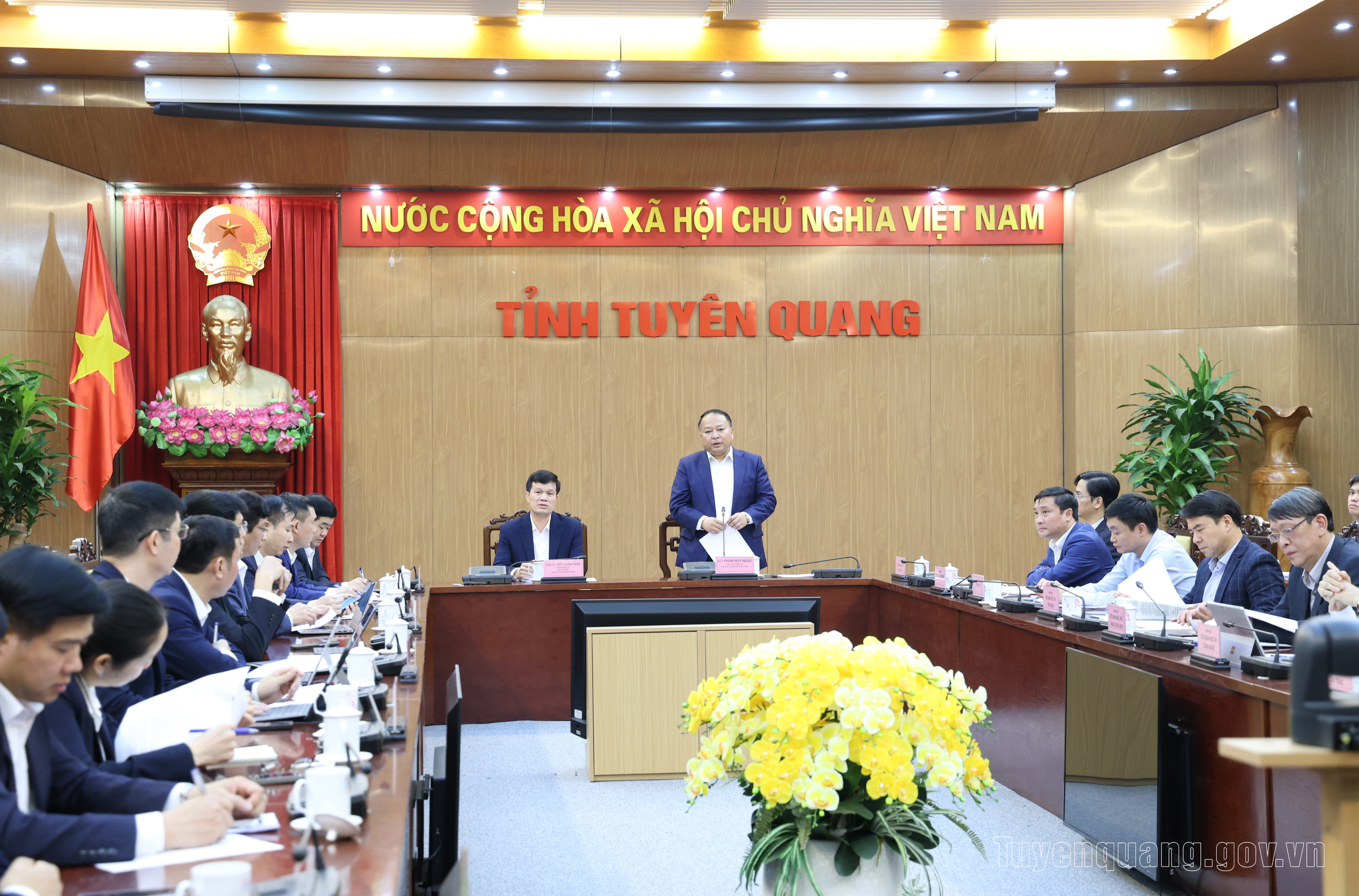 Tại buổi làm việc, đồng chí Chủ tịch UBND tỉnh Phan Huy Ngọc đã trao đổi khái quát với Đoàn công tác về kết quả phát triển kinh tế - xã hội của tỉnh Tuyên Quang trong thời gian qua. Đồng chí nhấn mạnh, với đặc thù là tỉnh miền núi, nhu cầu về nguồn nhân lực chất lượng cao, đặc biệt trong các lĩnh vực công nghiệp, công nghệ, quản trị kinh tế, chuyển đổi số và đổi mới sáng tạo vẫn còn rất lớn. Vì vậy, việc tăng cường hợp tác với các cơ sở giáo dục đại học có uy tín, trong đó có Đại học Công nghiệp Hà Nội, có ý nghĩa rất quan trọng đối với sự phát triển của tỉnh trong giai đoạn tới.