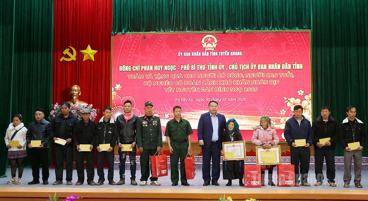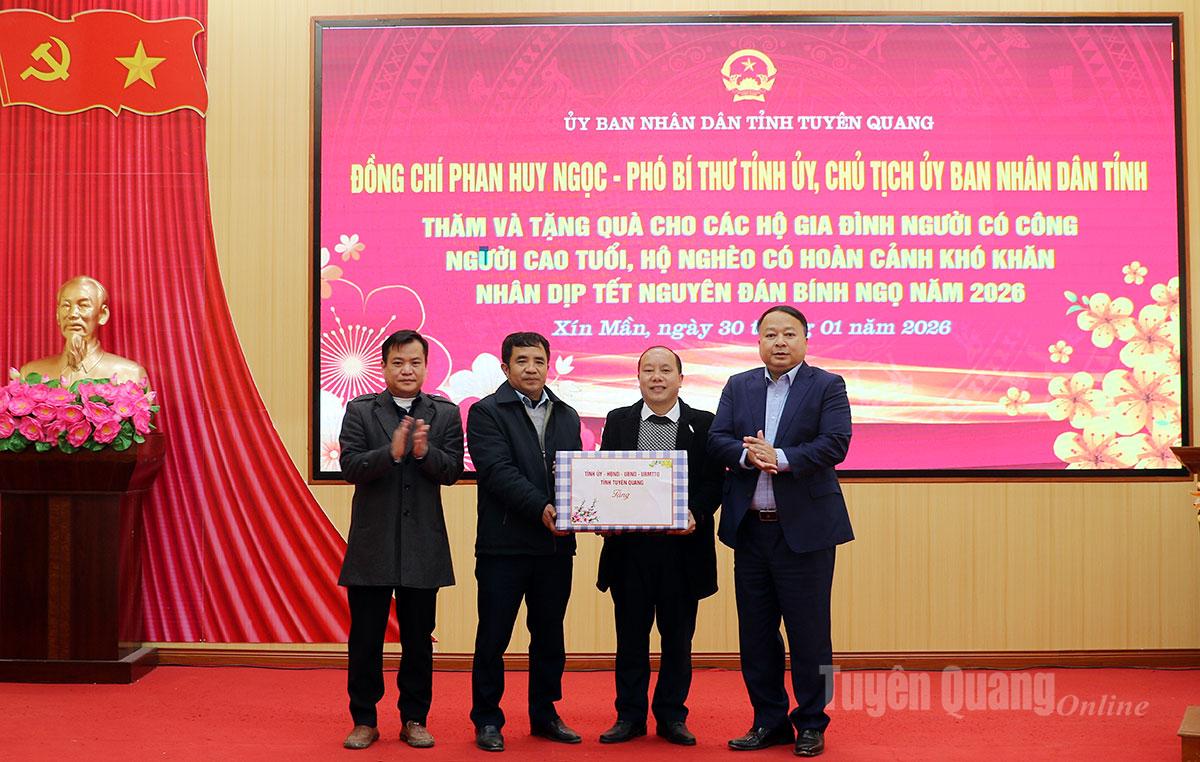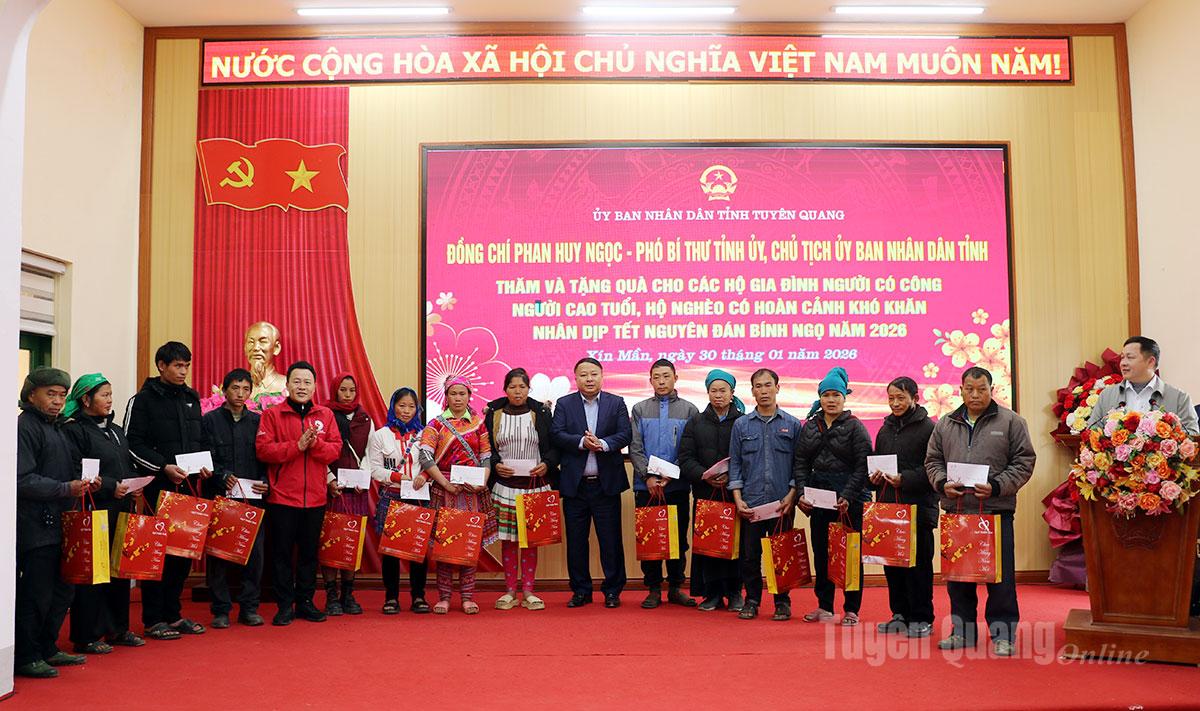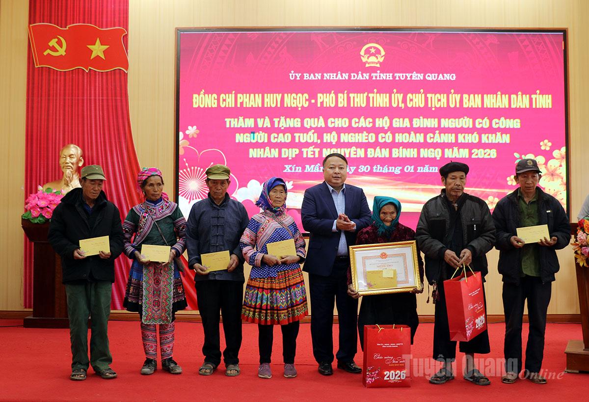 Thăm hỏi và tặng quà, Chủ tịch UBND tỉnh Phan Huy Ngọc đã hỏi thăm sức khoẻ, đời sống, chúc các gia đình đón Tết Nguyên đán đầm ấm, hạnh phúc. Mong muốn các hộ nghèo tiếp tục phấn đấu vươn lên phát triển kinh tế, thoát khỏi hộ nghèo; người có công, người cao tuổi phát huy trí tuệ, kinh nghiệm vận động Nhân dân tập trung phát triển kinh tế hộ, tuân thủ các chính sách pháp luật của Đảng và Nhà nước, xây dựng quê hương ngày càng giàu đẹp, văn minh.