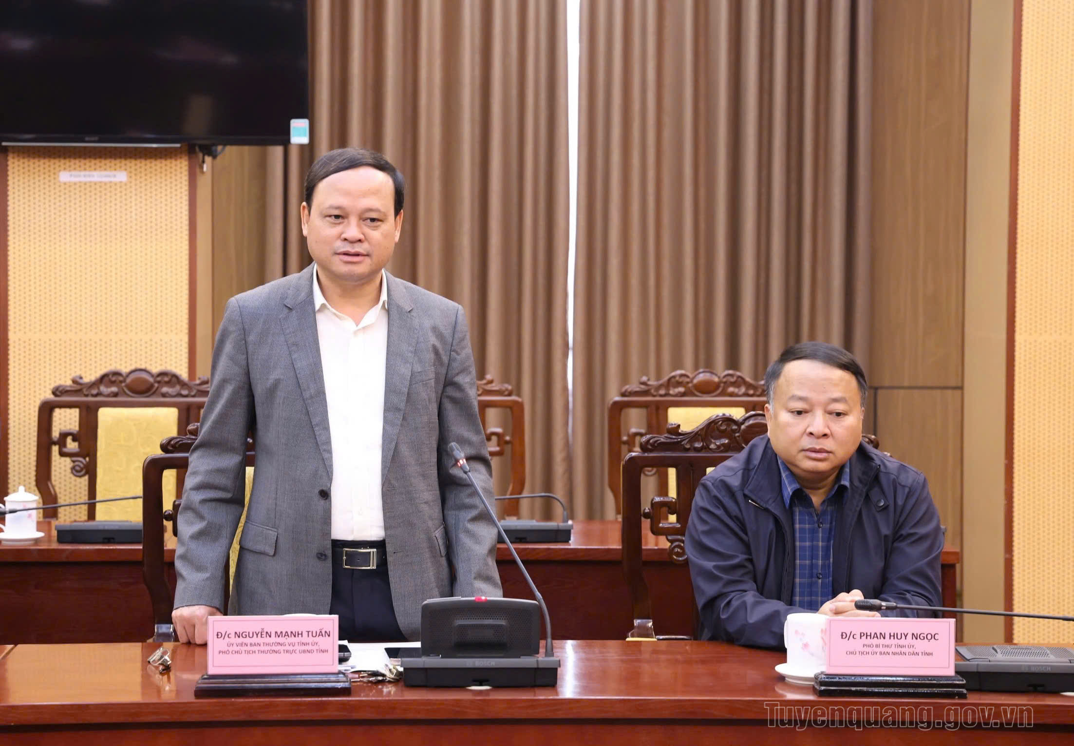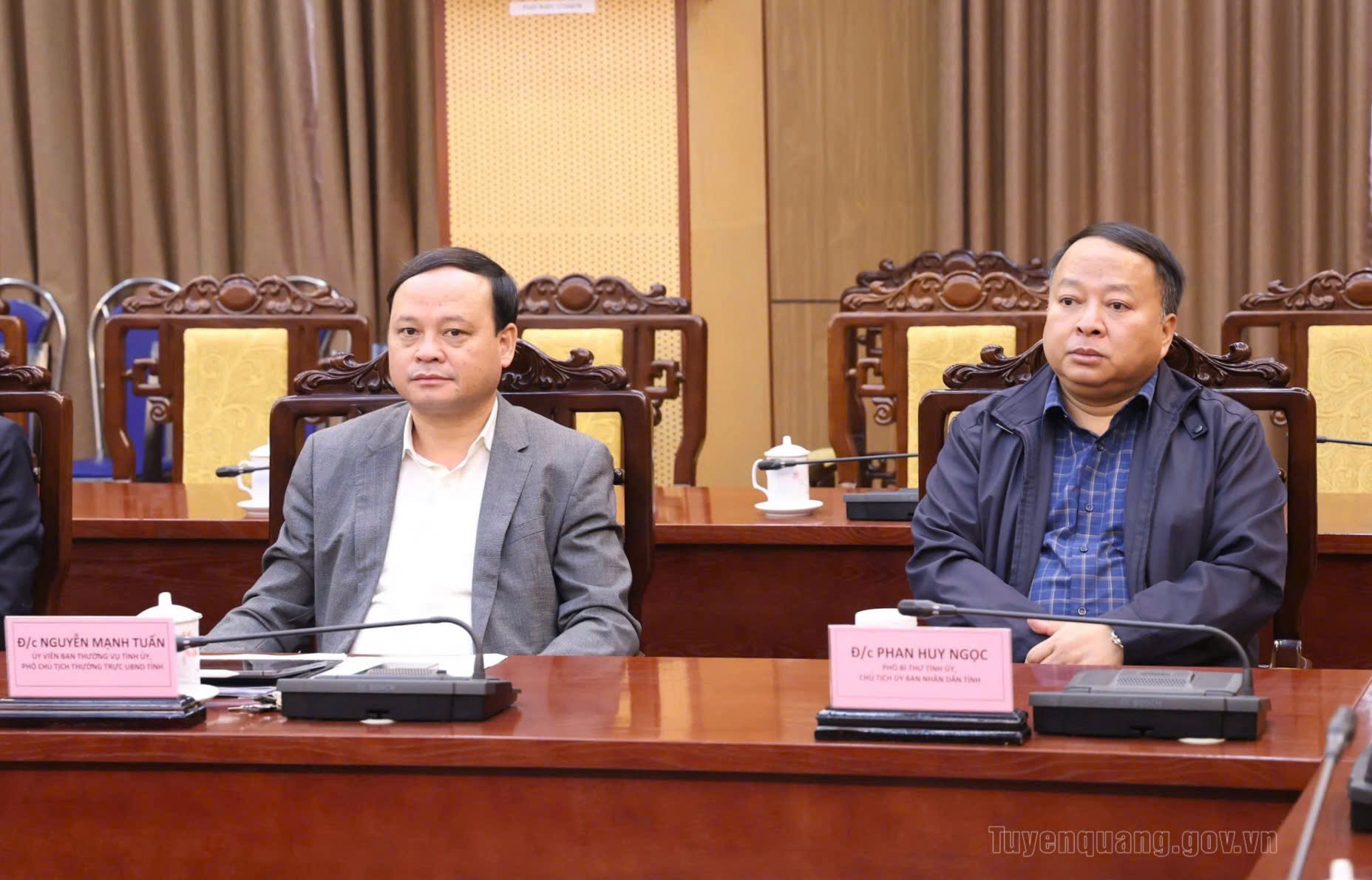 Đồng chí Chủ tịch UBND tỉnh Phan Huy Ngọc và Phó Chủ tịch Thường trực UBND tỉnh Nguyễn Mạnh Tuấn dự hội nghị.