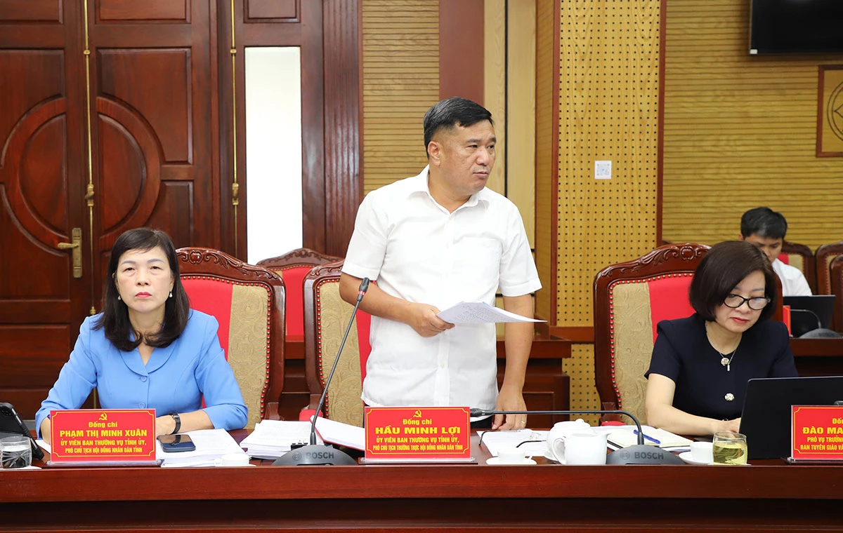 Phó Chủ tịch Thường trực HĐND tỉnh Hầu Minh Lợi thảo luận tại hội nghị.