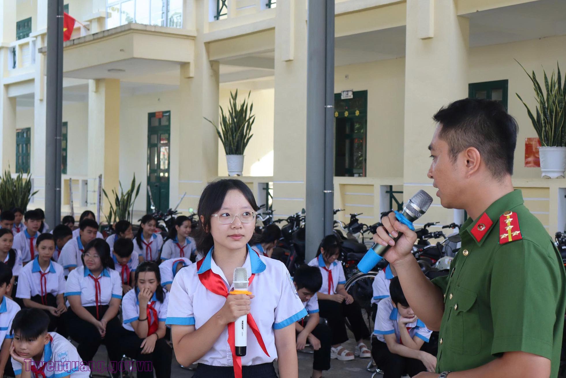 Công an phường An Tường tuyên truyền phổ biến giáo dục pháp luật và kỹ năng phòng tránh rủi ro trên không gian mạng cho học sinh Trường THCS An Tường.