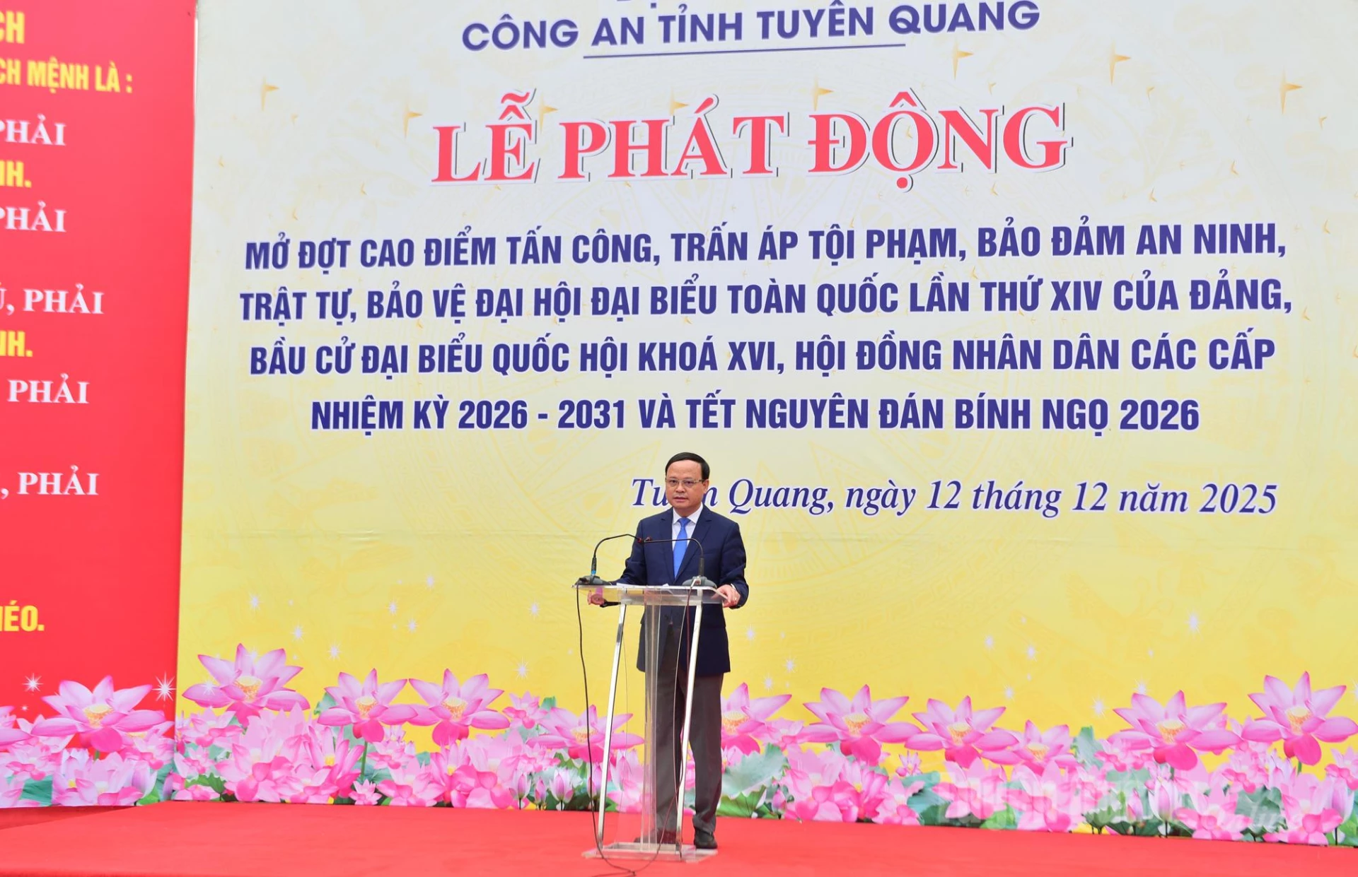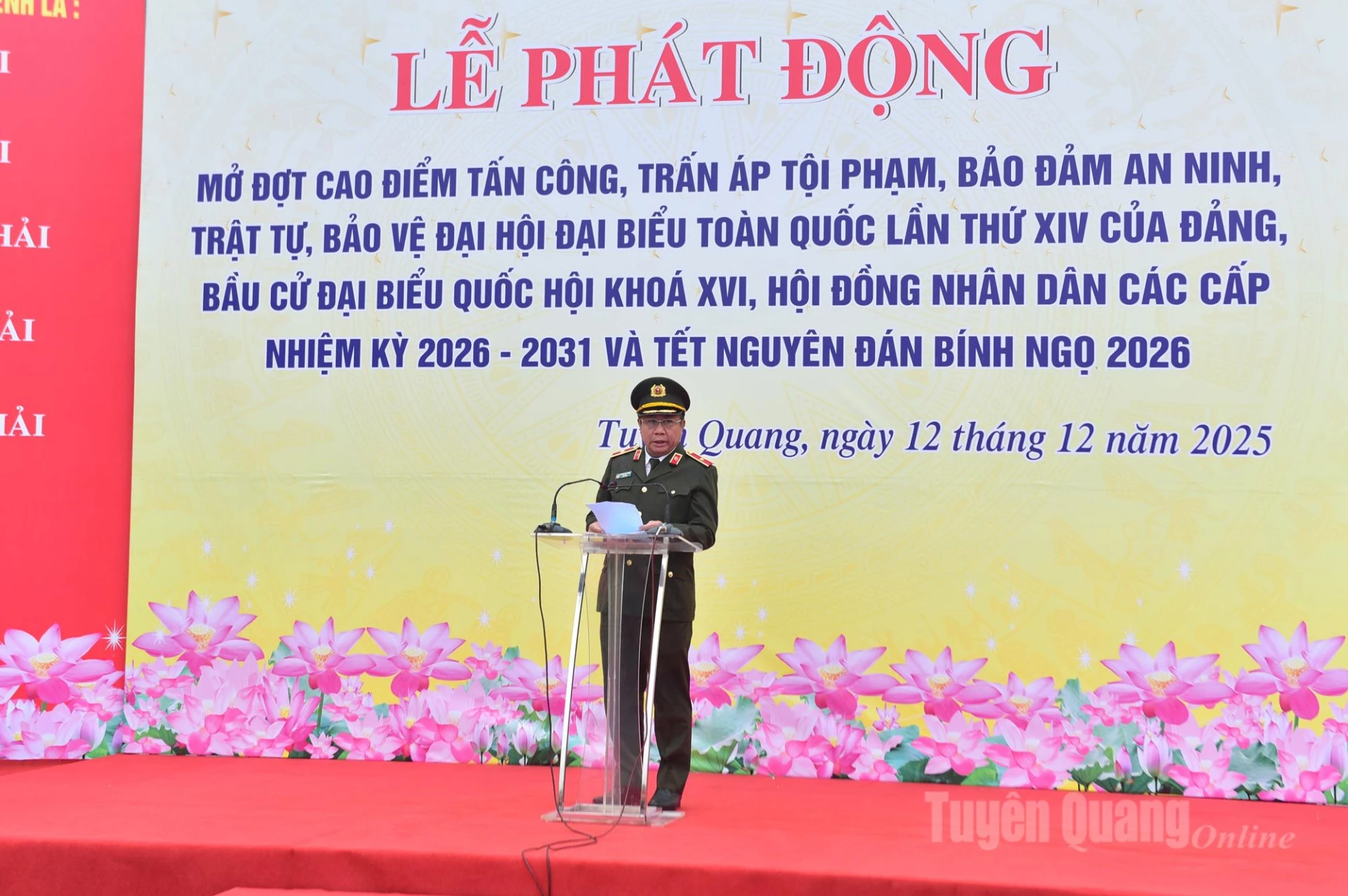 Cũng trong sáng nay, các đơn vị Công an cấp xã trên địa bàn tỉnh Tuyên Quang đồng loạt tổ chức lễ phát động, tạo khí thế quyết liệt, thống nhất từ tỉnh đến cơ sở trong thực hiện đợt cao điểm tấn công, trấn áp tội phạm, bảo đảm ANTT phục vụ các sự kiện chính trị quan trọng và dịp Tết Nguyên đán Bính Ngọ 2026.