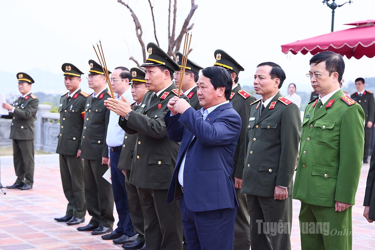 Các đồng chí lãnh đạo tỉnh, Bộ Công an dâng hương tại Nhà tưởng niệm Chủ tịch Hồ Chí Minh tại Trụ sở Công an tỉnh.
