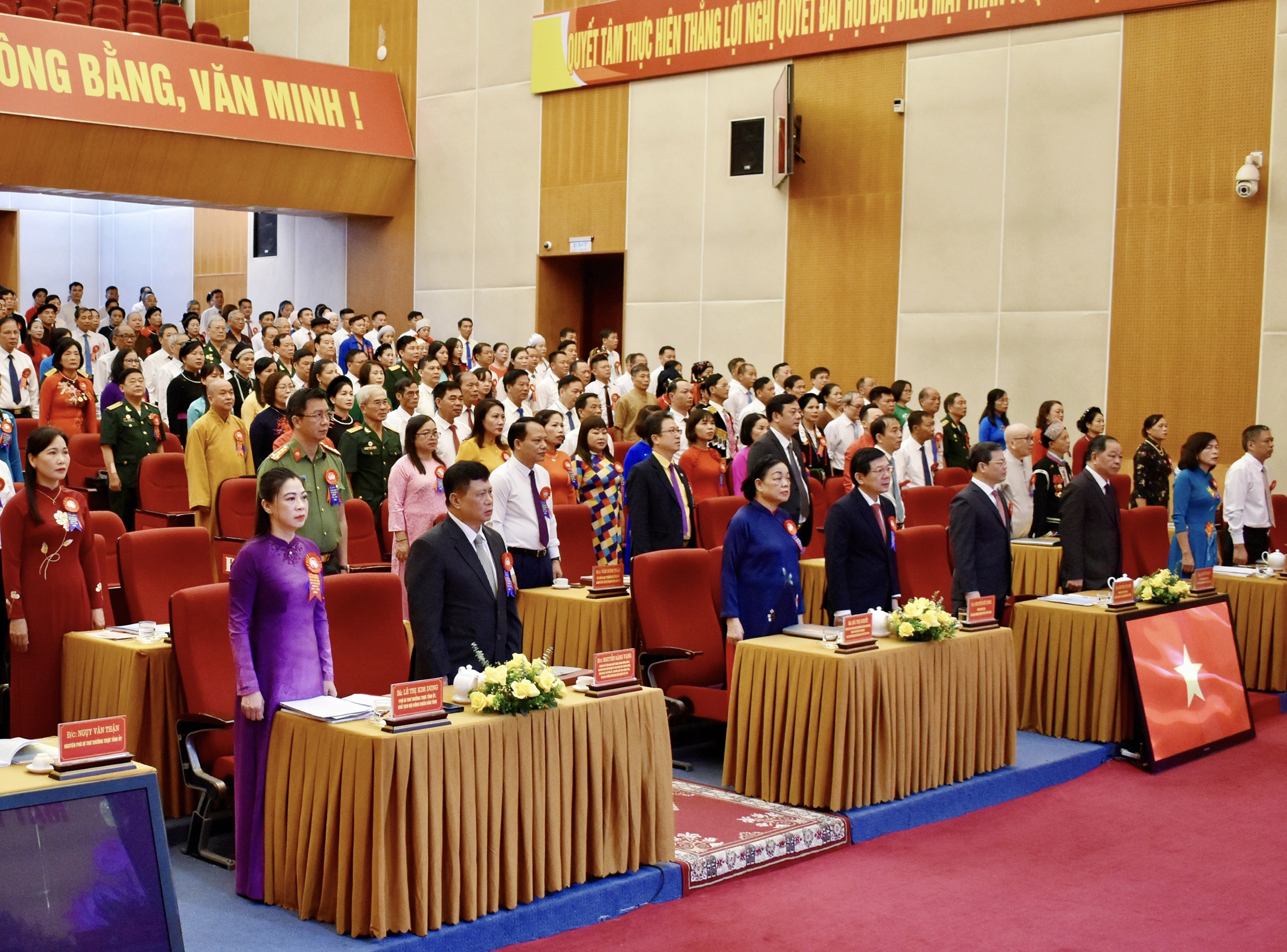 Các đại biểu chào cờ và hát quốc ca tại Đại hội.