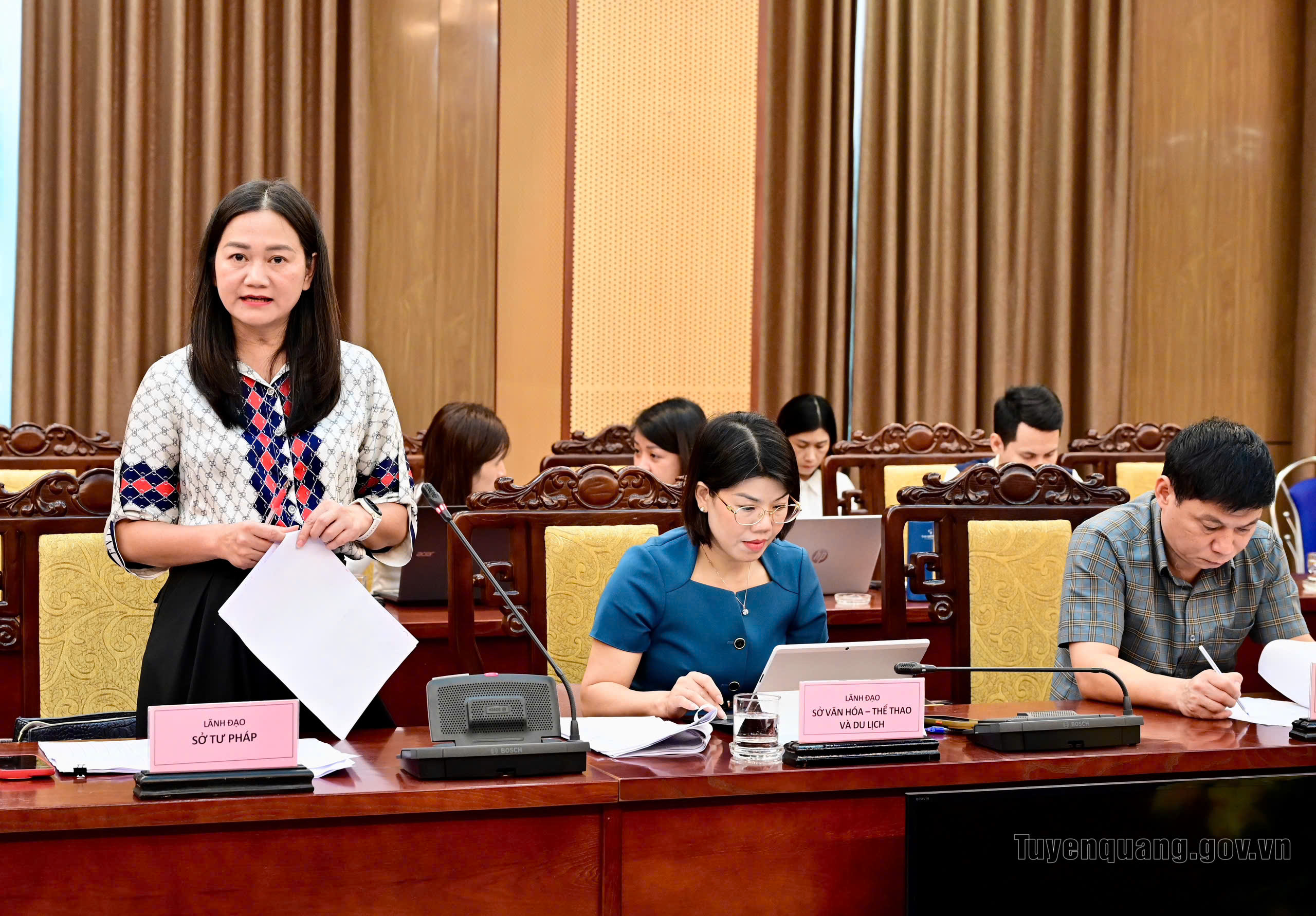 Lãnh đạo Sở Tư pháp phát biểu thảo luận tại phiên họp.