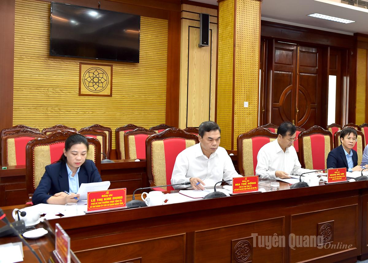 Dự buổi làm việc có các đồng chí: Lê Thị Kim Dung, Phó Bí thư Thường trực Tỉnh ủy; Ma Thế Hồng, Phó Bí thư Tỉnh ủy, Chủ tịch Ủy ban MTTQ tỉnh; lãnh đạo các sở, ban, ngành tỉnh.