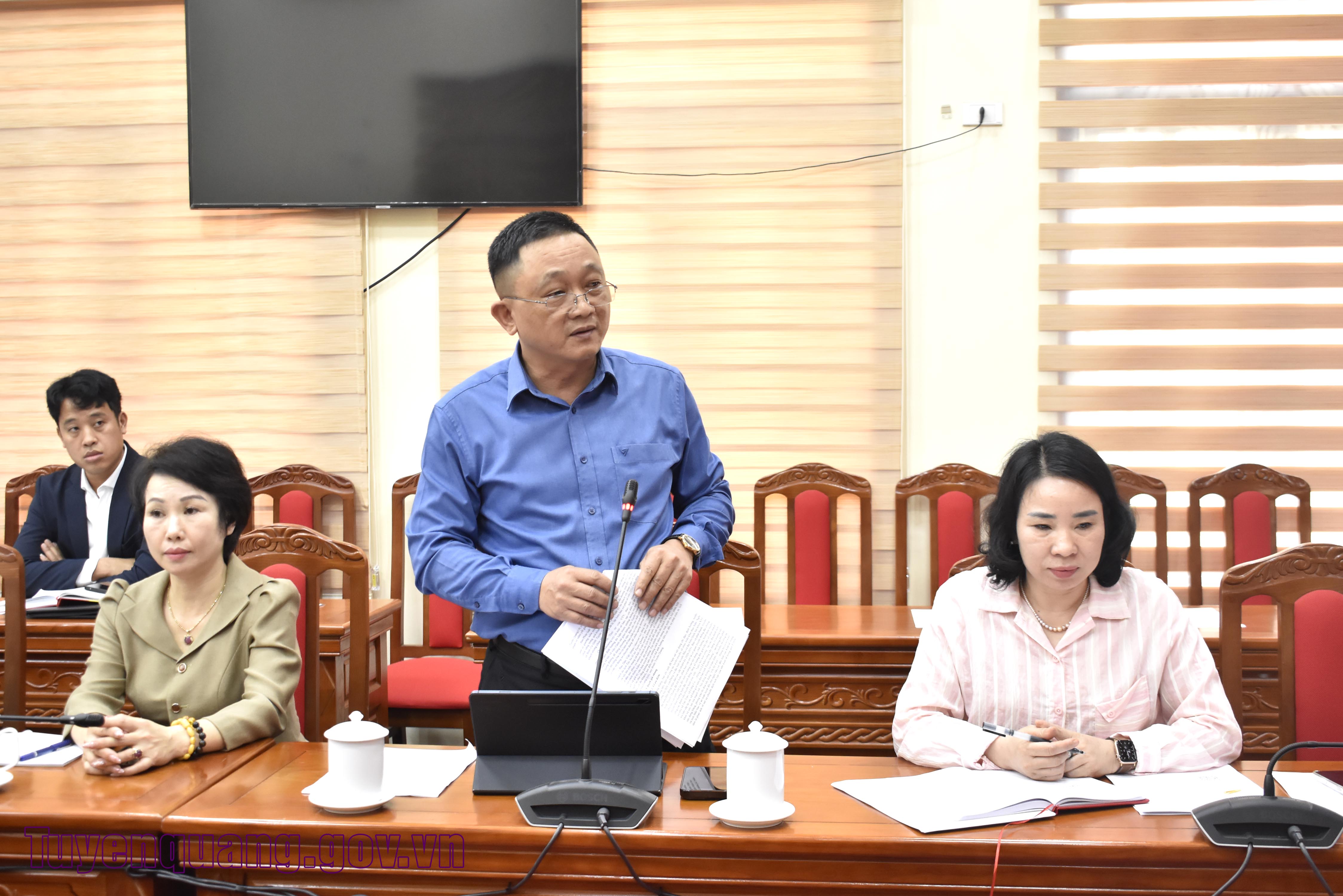 Đại diện lãnh đạo Báo và phát thanh, truyền hình Tuyên Quang phát biểu thảo luận tại hội nghị.