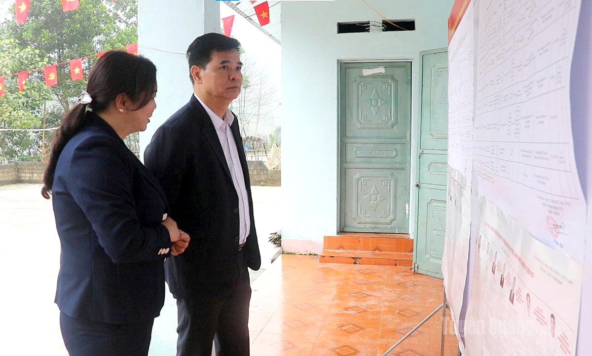 Đoàn kiểm tra đơn vị bầu cử số 1, kiểm tra điểm bỏ phiếu tại thôn Xây Dựng, xã Sơn Dương.