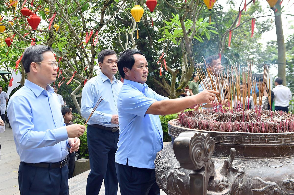 Các đồng chí Thường trực Tỉnh ủy và đại biểu dâng hương tại Đền Hạ.