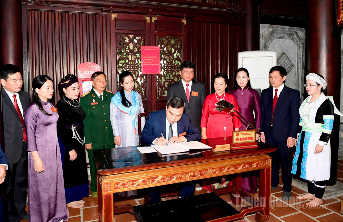 Đồng chí Ma Thế Hồng, Phó Bí thư Tỉnh ủy, Chủ tịch Ủy ban MTTQ Việt Nam tỉnh ghi lưu bút vào Sổ truyền thống tại Đền thờ Chủ tịch Hồ Chí Minh.