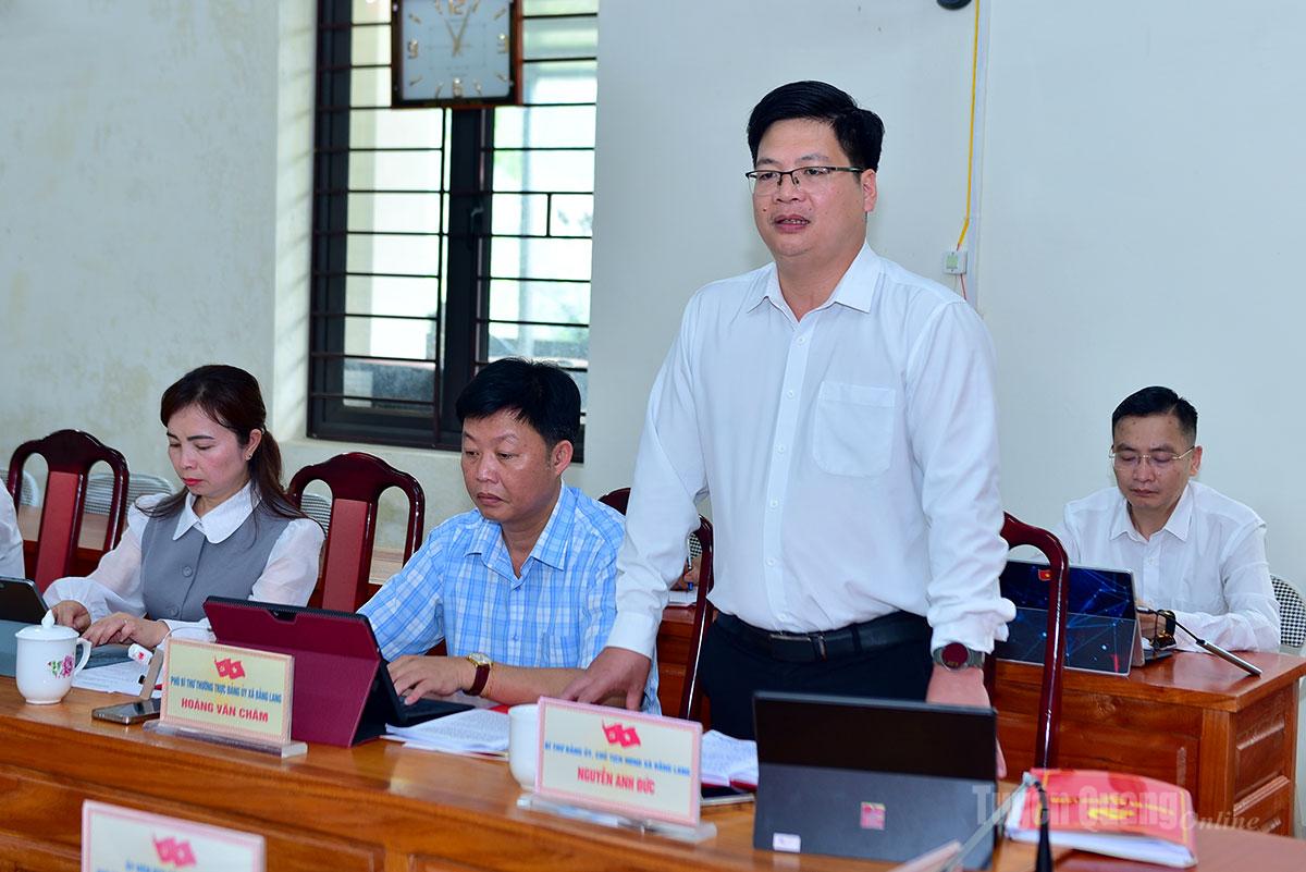 Phát biểu kết luận buổi làm việc, đồng chí Phó Bí thư Thường trực chuyên trách Đảng ủy UBND tỉnh Nông Thị Bích Huệ đã ghi nhận và đánh giá cao những kết quả Ban Thường vụ Đảng ủy xã Bằng Lang đã đạt được trong thời gian qua. Đồng chí đề nghị thời gian tới, xã tiếp tục phát huy tinh thần đoàn kết, chủ động, sáng tạo trong lãnh đạo, chỉ đạo thực hiện các nhiệm vụ; tập trung khắc phục những hạn chế, khuyết điểm đã được chỉ ra. Trong đó, cần nâng cao chất lượng sinh hoạt chi bộ, đẩy mạnh ứng dụng công nghệ thông tin, nhất là sổ tay đảng viên điện tử; quan tâm phát triển nguồn nhân lực, từng bước hoàn thiện hạ tầng số đáp ứng yêu cầu nhiệm vụ.