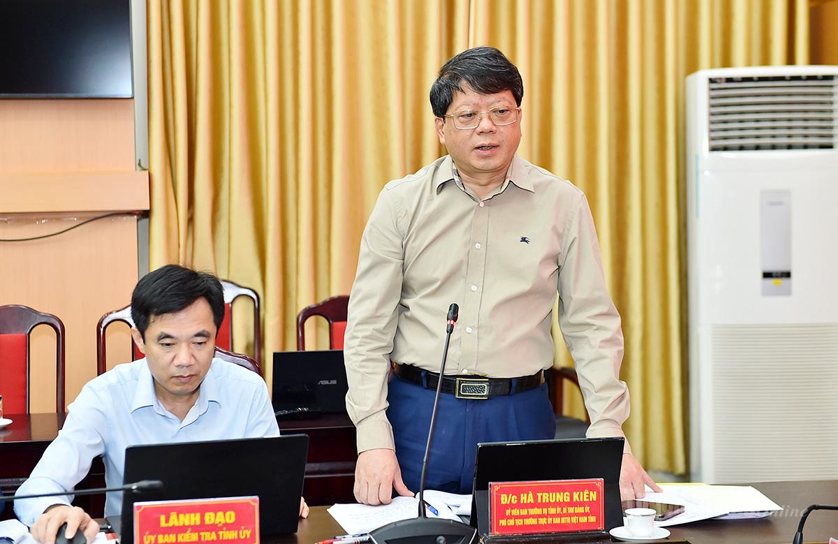 Đồng chí Hà Trung Kiên, Phó Chủ tịch Thường trực Ủy ban MTTQ Việt Nam tỉnh phát biểu tại buổi làm việc.