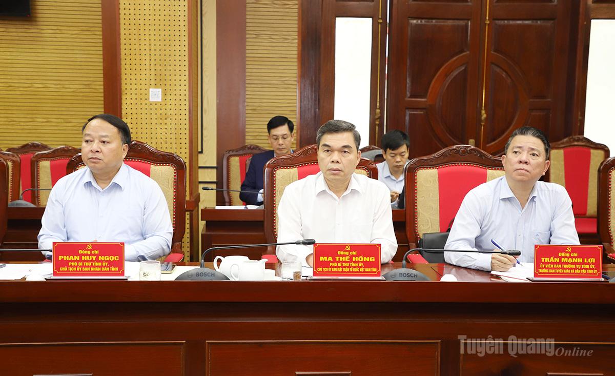 Chủ tịch UBND tỉnh Phan Huy Ngọc và Phó Bí thư Tỉnh ủy, Chủ tịch Ủy ban MTTQ tỉnh Ma Thế Hồng và đại biểu dự buổi làm việc.
